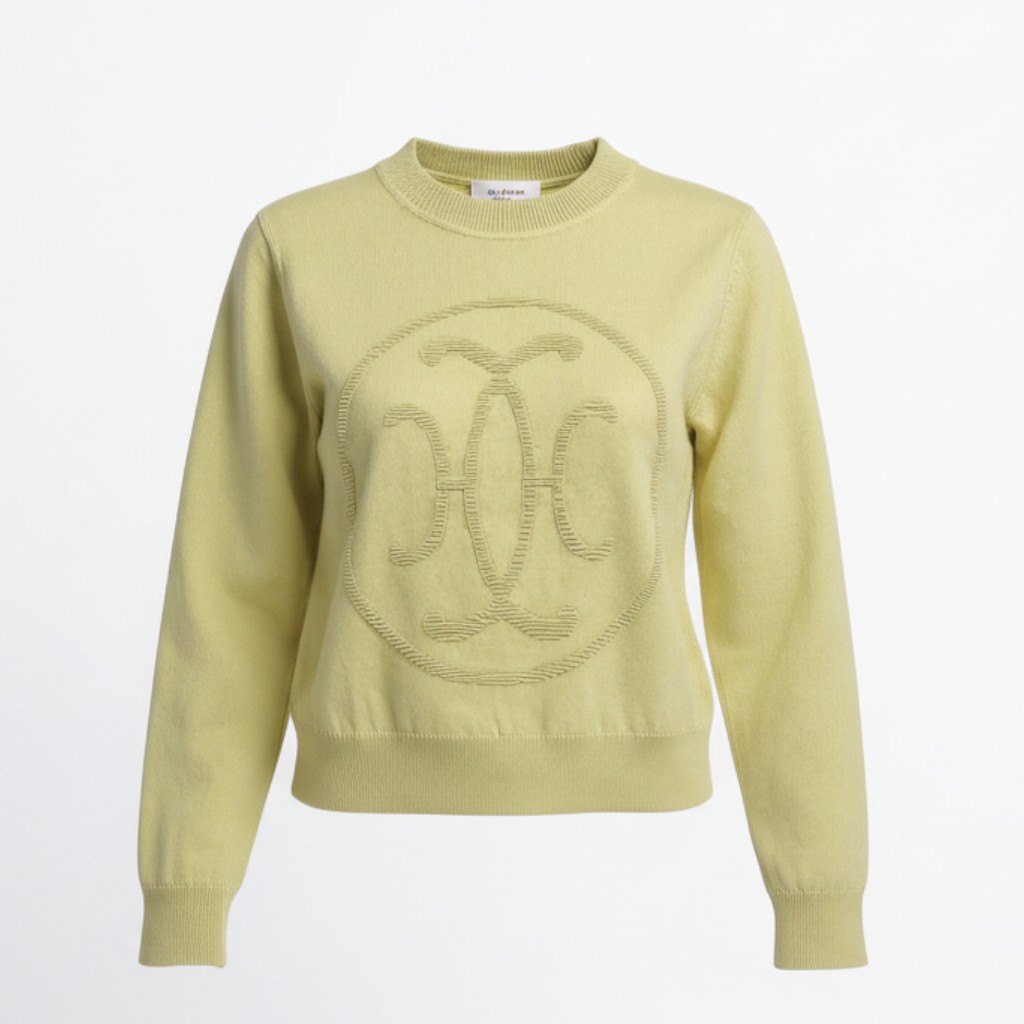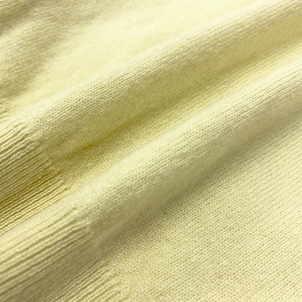 エルメスならではの上質感が際立つ、カシミア100%のニットセーター。 カラーは柔らかく上品なイエロー系(ペールイエロー)で、肌なじみの良い明るい印象です。 フロントには立体感のある同色ジャカード調ロゴモチーフが施され、さりげなくブランドの存在感を演出。 一枚着はもちろん、アウターのインナーとしても映え、きれいめカジュアルからエレガントな日常使いまで幅広く対応する一着です。