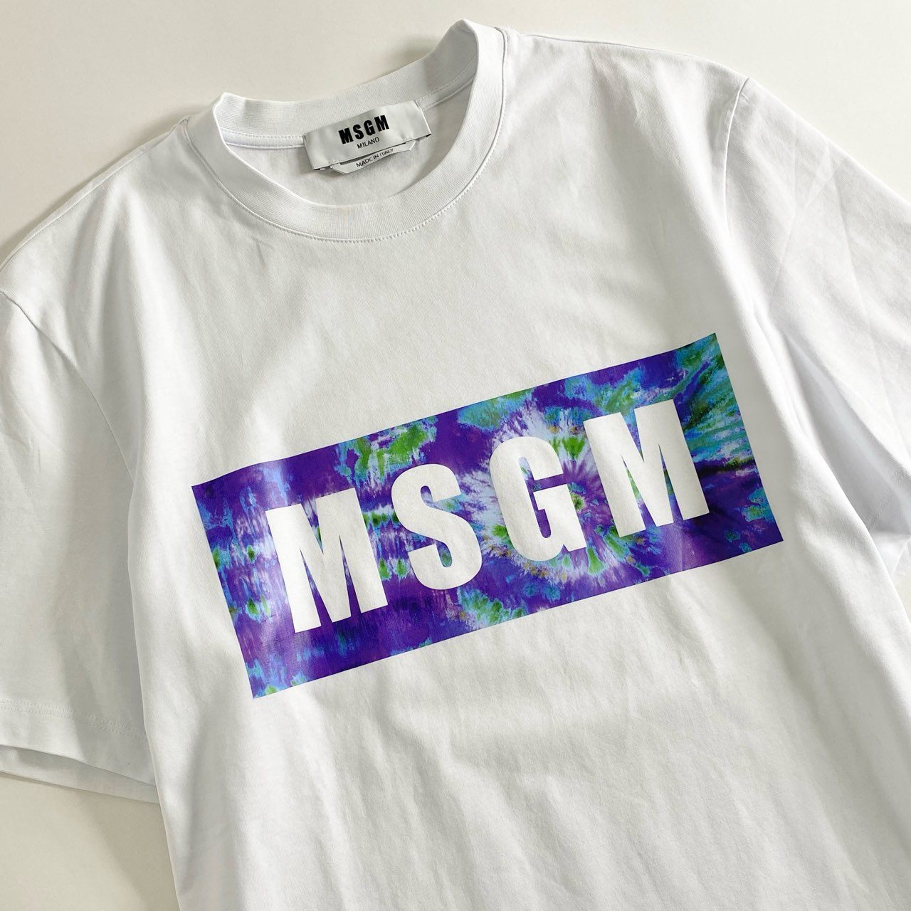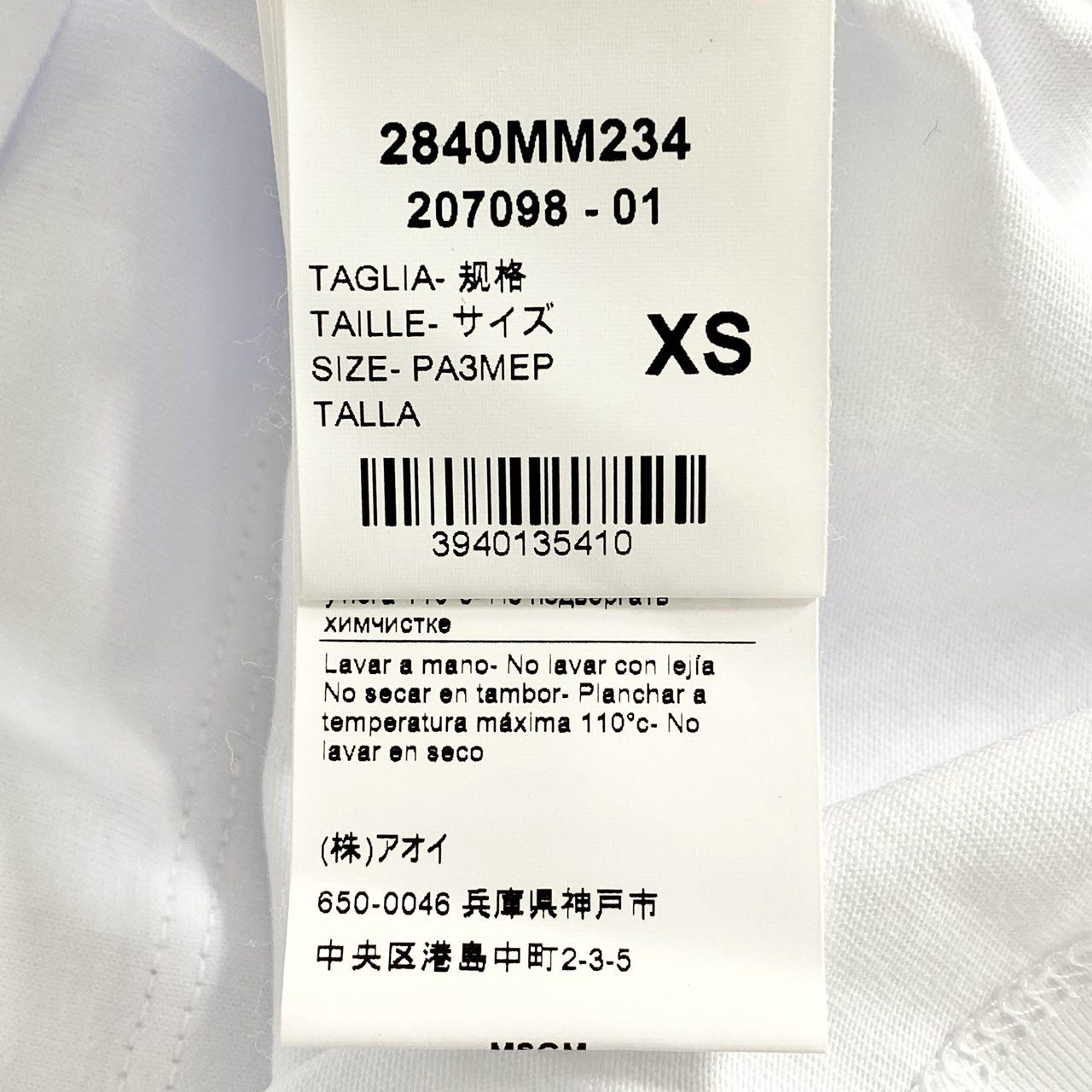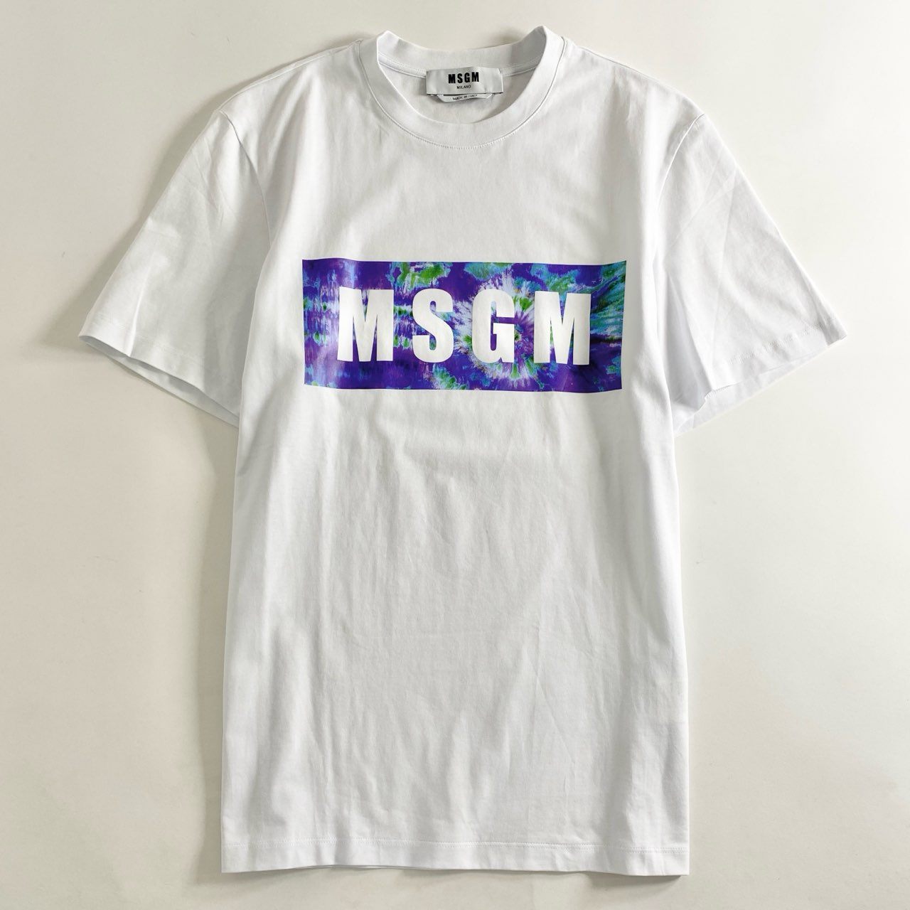 9b26 イタリア製 MSGM エムエスジィエム Tシャツ 半袖カットソー ロゴ プリント XS ホワイト コットン トップス メンズ
