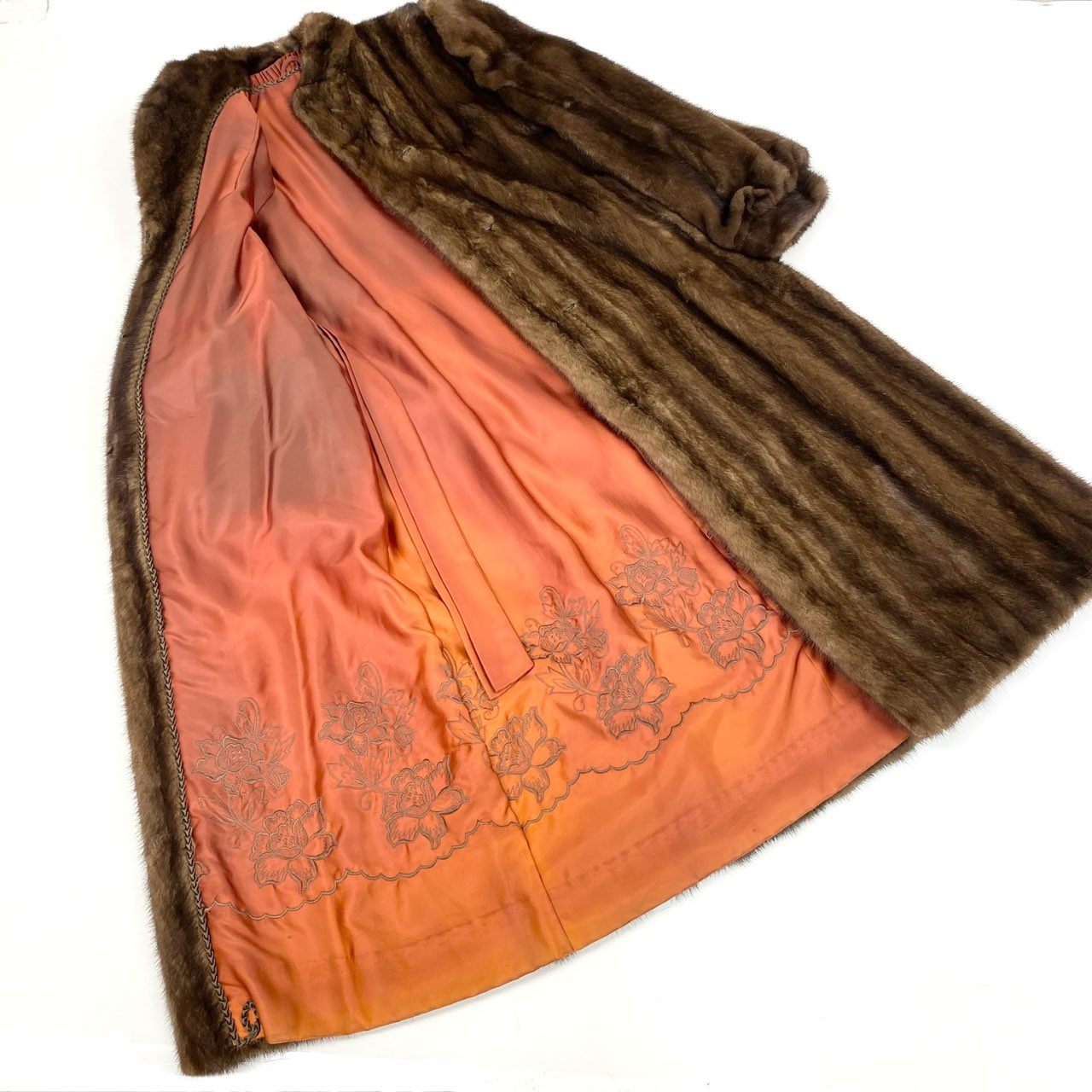 54L4 SAGA MINK サガミンク 銀サガ デミバフミンク 超ロングコート 丈118cm サイズF ブラウン 最高級本毛皮 MINK FUR 裏地刺繍t18r
