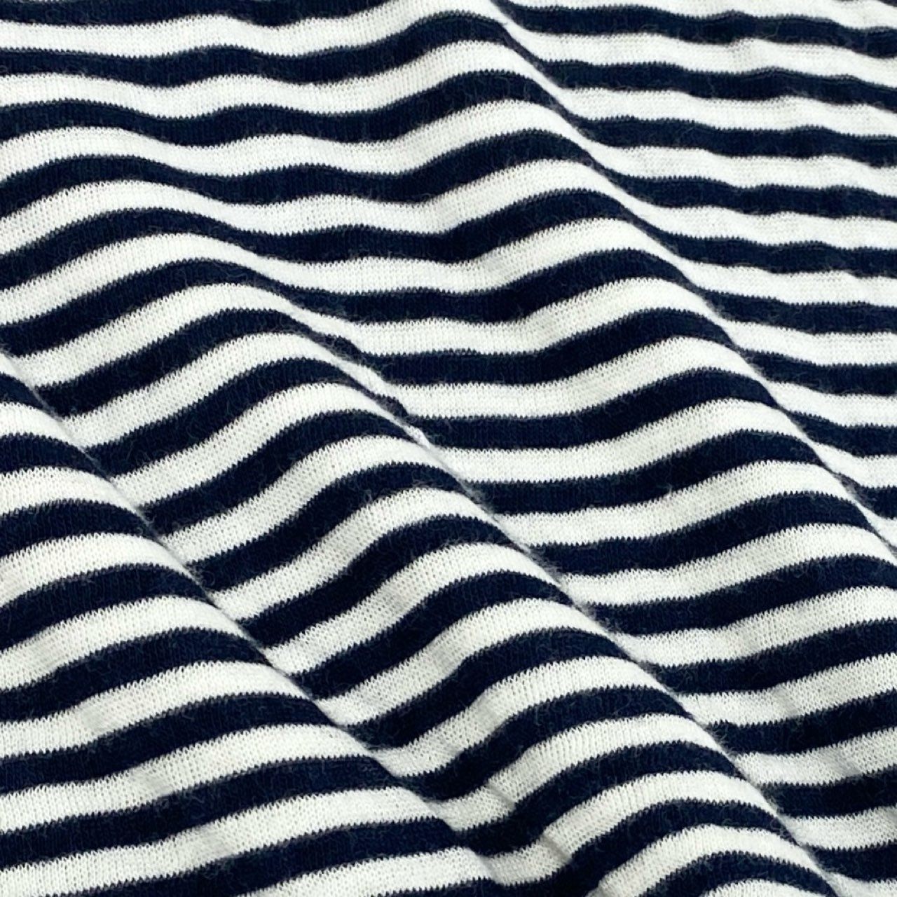 メゾンマルジェラの定番モデル「S30GC044」半袖カットソーです。ネイビー×ホワイトの細ボーダー柄により、爽やかでスタイリッシュな印象を演出。柔らかなコットン素材で、マットな質感ながら肌触りは軽やか。クルーネック仕様に加え、裾や袖の自然な風合いがカジュアル感をプラスします。デニムやスラックスなど幅広いコーデに合わせやすく、日常使いからリゾートまで活躍する一着です。