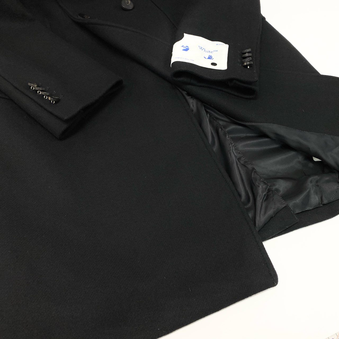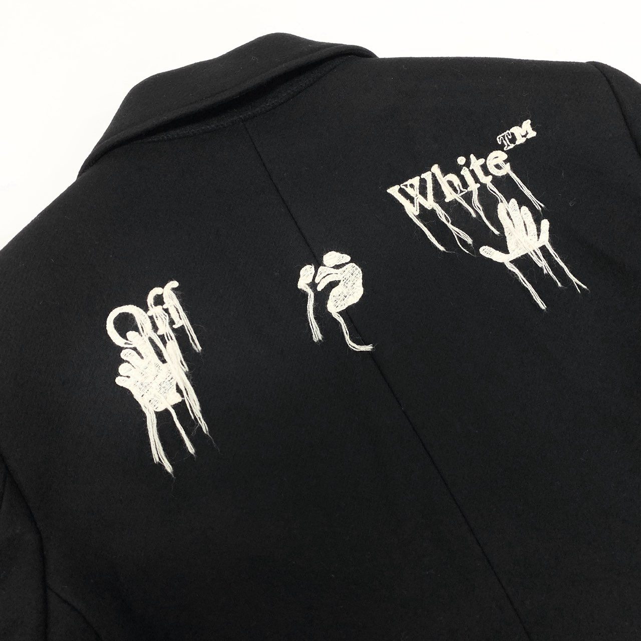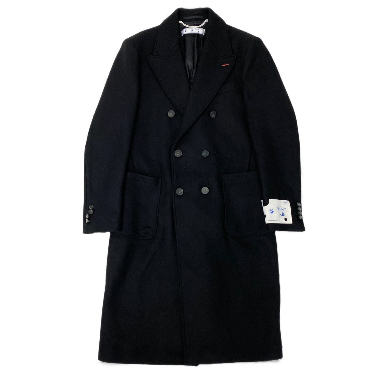 20L2【美品】Off White オフホワイト ダブルブレストロングコート ウールコート アウター OMER003E20FAB001 Lサイズ ブラック メンズo07t