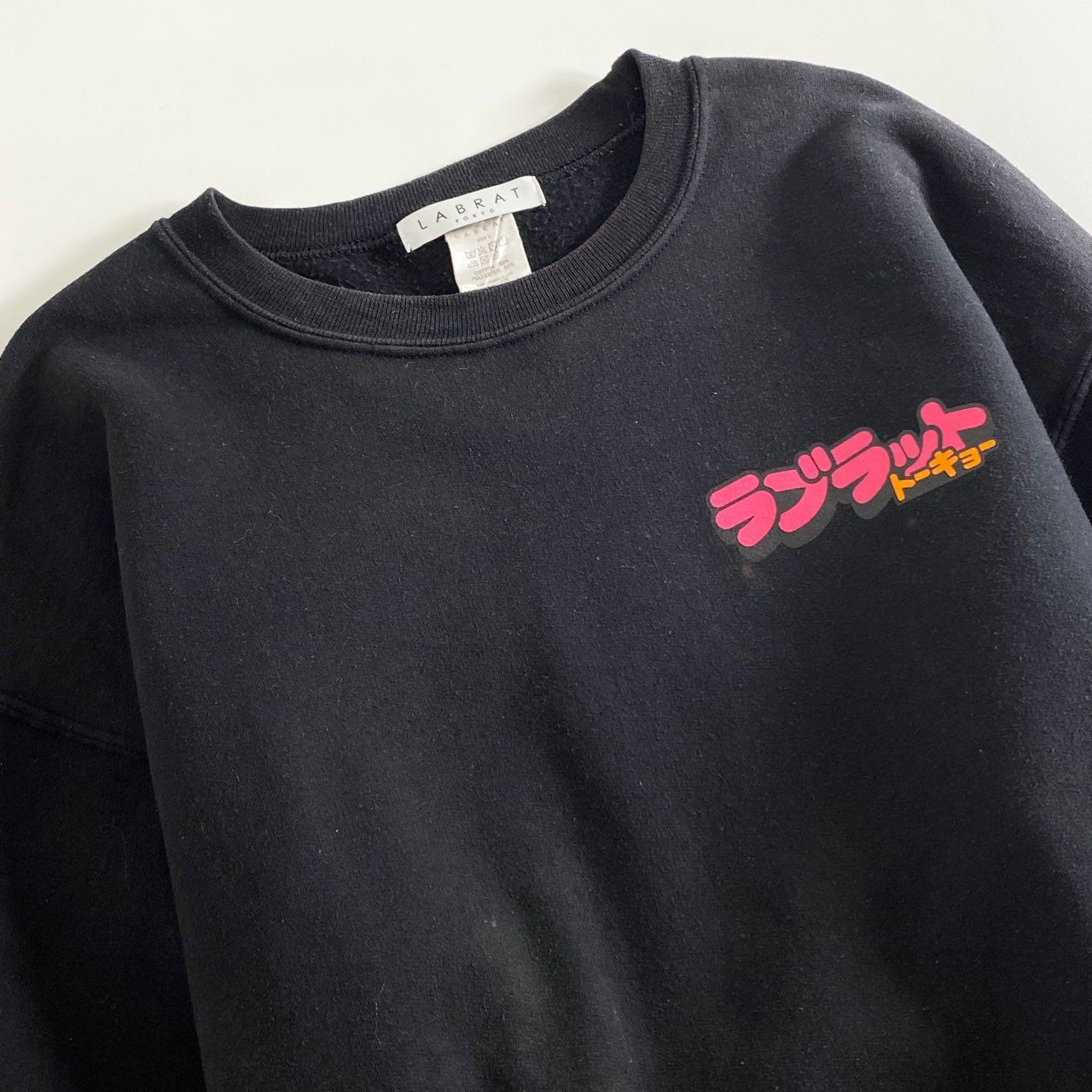 19e27 LABRAT×coji coji ラブラット コジコジ クルーネック スウェット トレーナー プルオーバー ロゴプリント バックプリント Lサイズ ブラック
