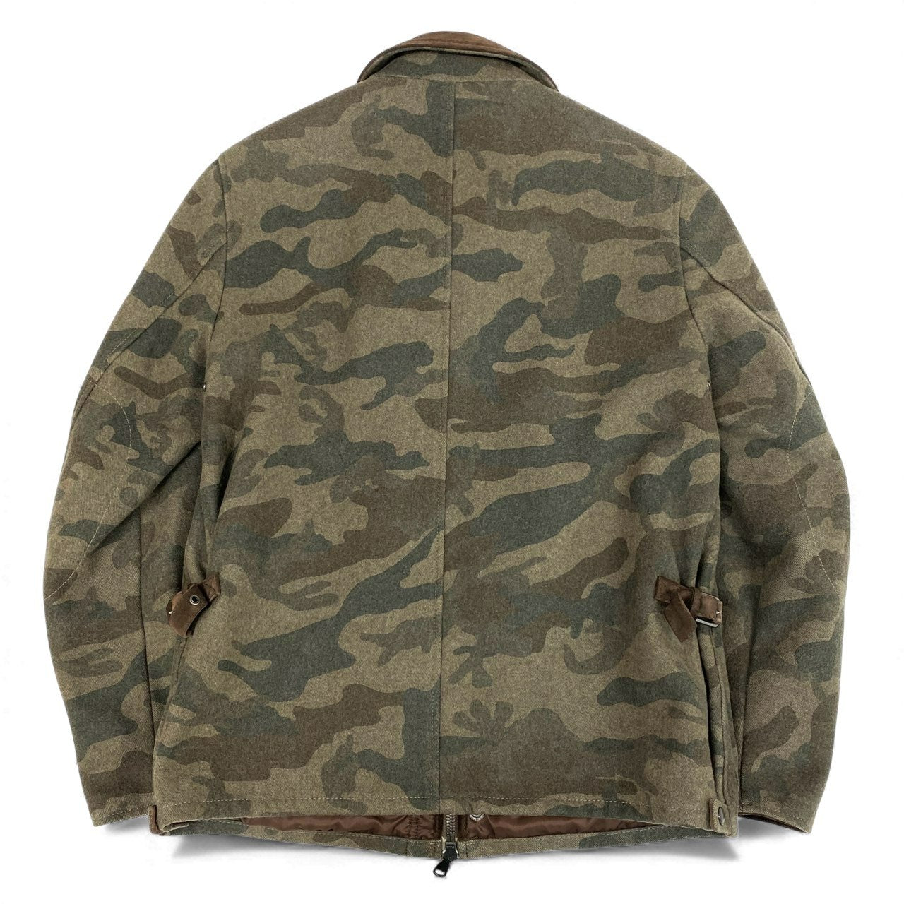 カーキグリーン系のカモフラージュ柄 が特徴的な、JACOB COHEN(ヤコブコーエン)のジャケットです。表地は マットでしっかりとしたウール混のような素材感 で、保温性が高く秋冬のアウターとして活躍します。コーデュロイ調のような ブラウンの襟切り替え と、大きめのフラップポケットが武骨さと上質さを両立。スナップボタンがアクセントとなり、カジュアルから大人ミリタリースタイルまで幅広く着用可能です。一枚で雰囲気が決まる存在感あるアイテムです。