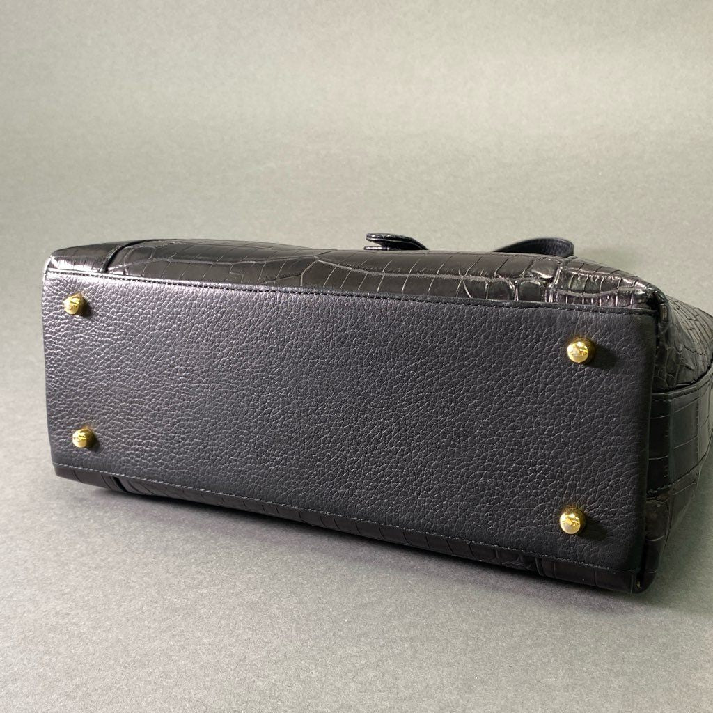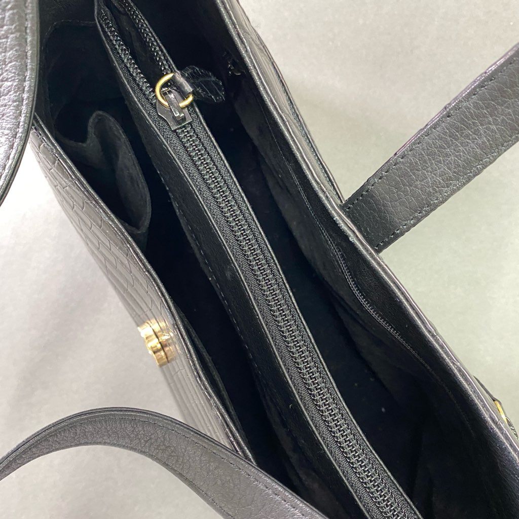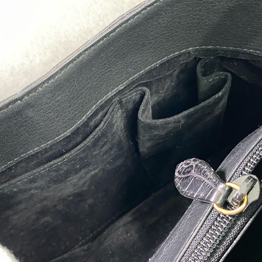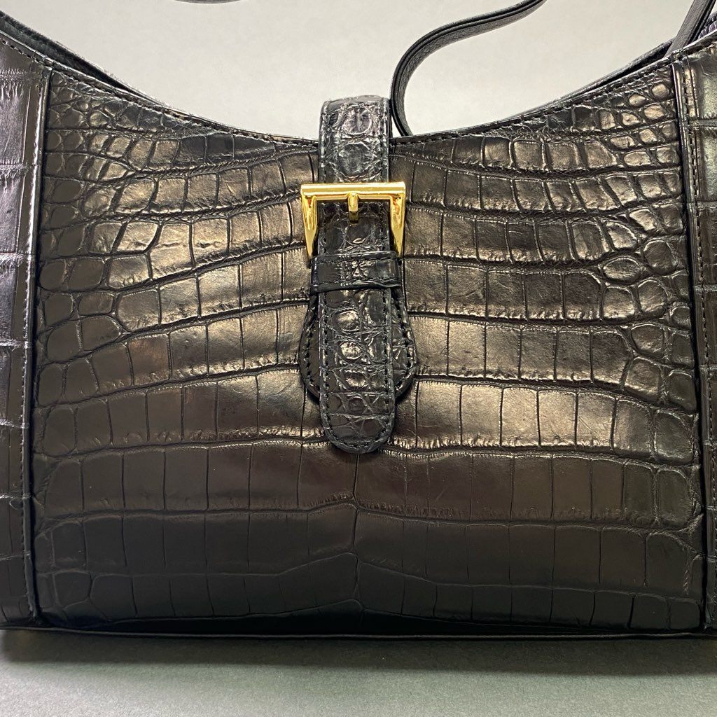 De17 【美品】 本革 クロコダイルレザー センター取り ワンショルダーバッグ ブラック マットクロコ レディース 女性用 鞄 ゴールド金具