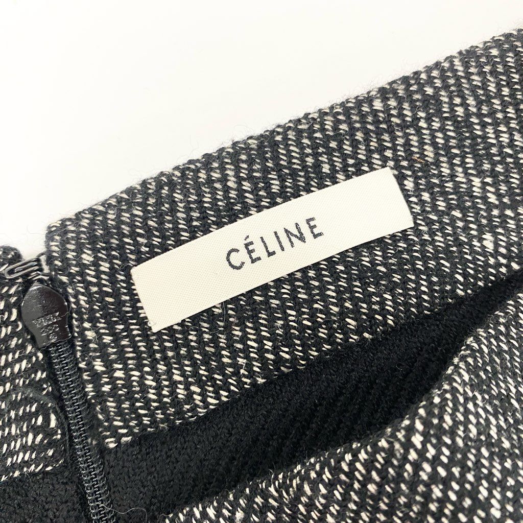 79L15 CELINE セリーヌ フィッシュテールスカート ミドル丈 メランジ バックジップ 38 ブラック レディース 女性用u02t