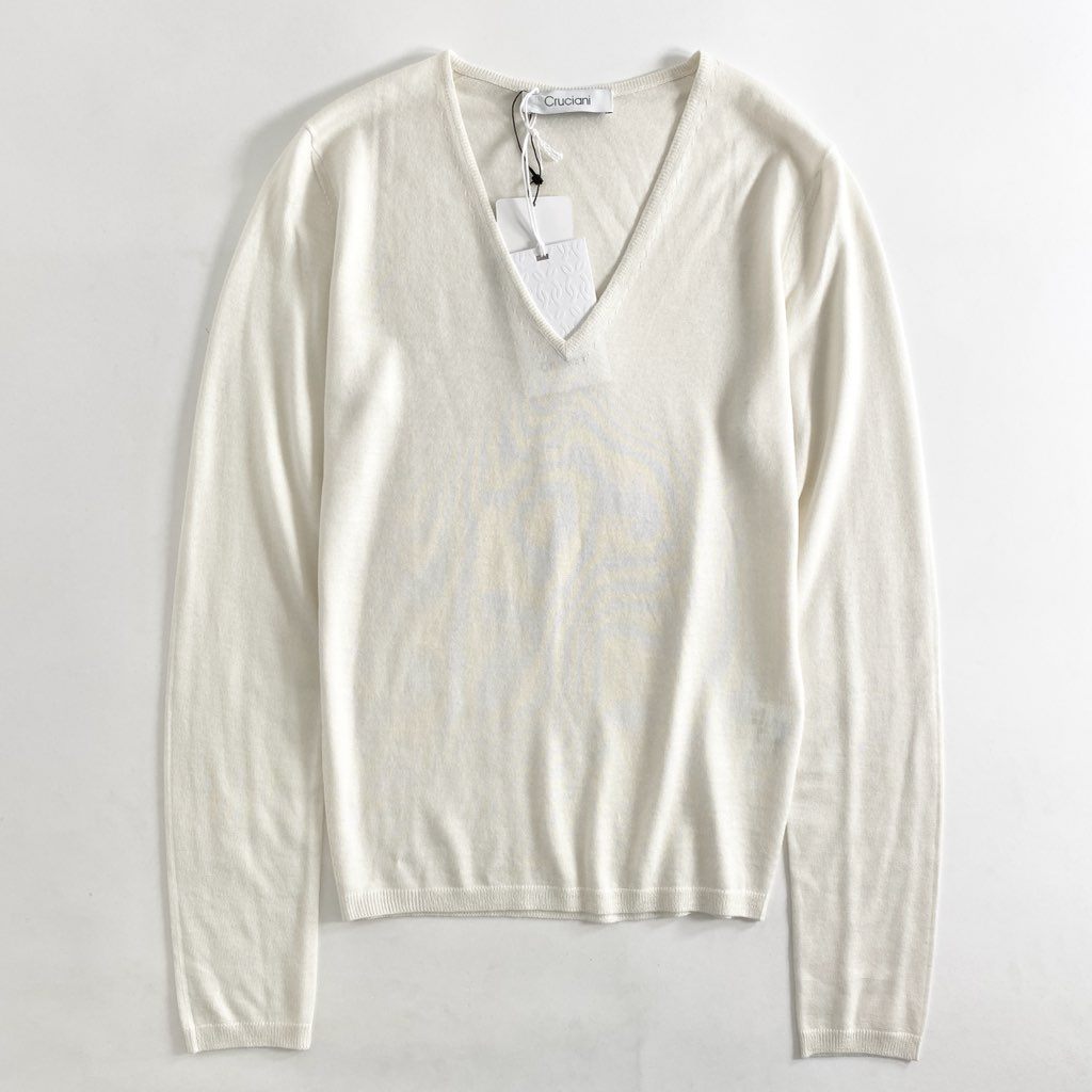 52f20 【未使用タグ付き】定価8.5万円 Cruciani クルチアーニ カシミヤシルク混紡 ニットセーター ハイゲージニット サイズ40 ホワイト レディース 女性用
