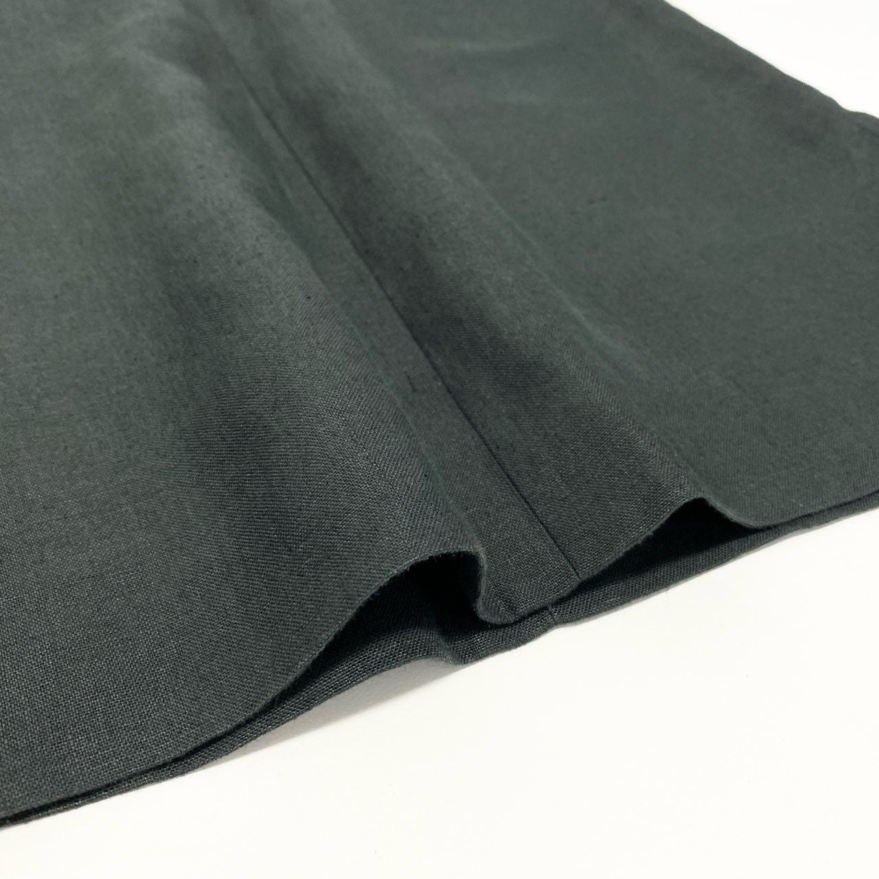 カラーは深みのあるダークフォレストグリーン(濃緑×墨黒寄り)で、落ち着いた大人のニュアンスが魅力的なHERMES(エルメス)のリネンスカートです。素材はマットでさらりとした上質リネンを使用し、季節を問わず軽やかに着られる快適な質感です。シンプルなフロントデザインながら、立体的なタック処理によりシルエットがきれいに見える仕立てのよさが際立ちます。オンオフ問わず着回し力が高く、同系色のリネンジャケットと合わせてセットアップ風にも着用可能。控えめながらエレガントさが際立つ、大人のワードローブに似合う一枚です。