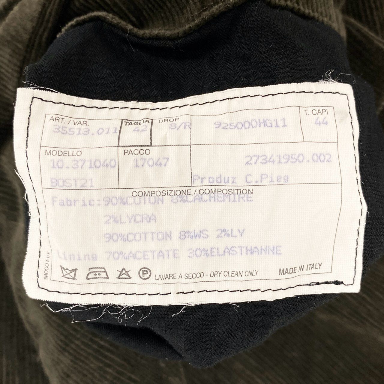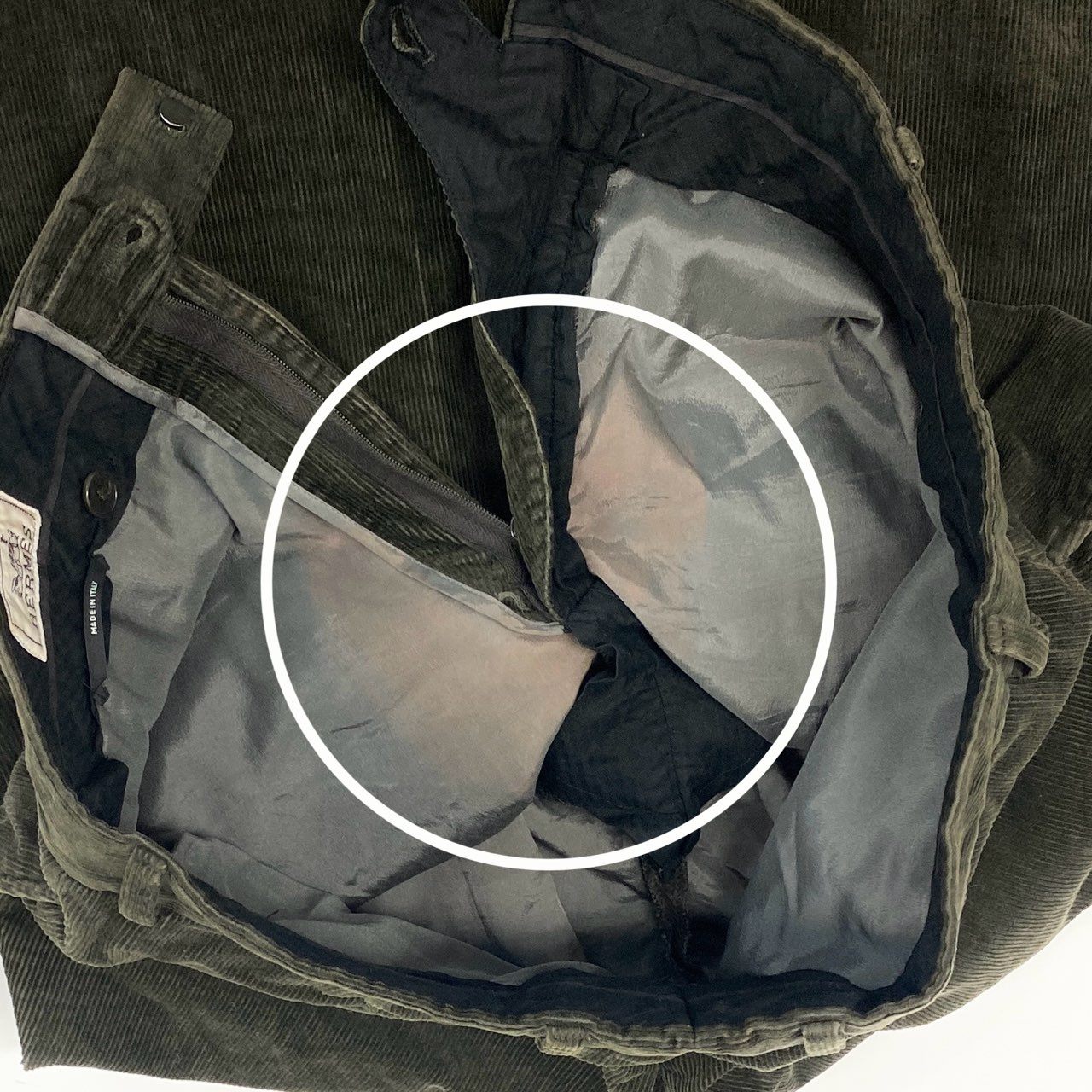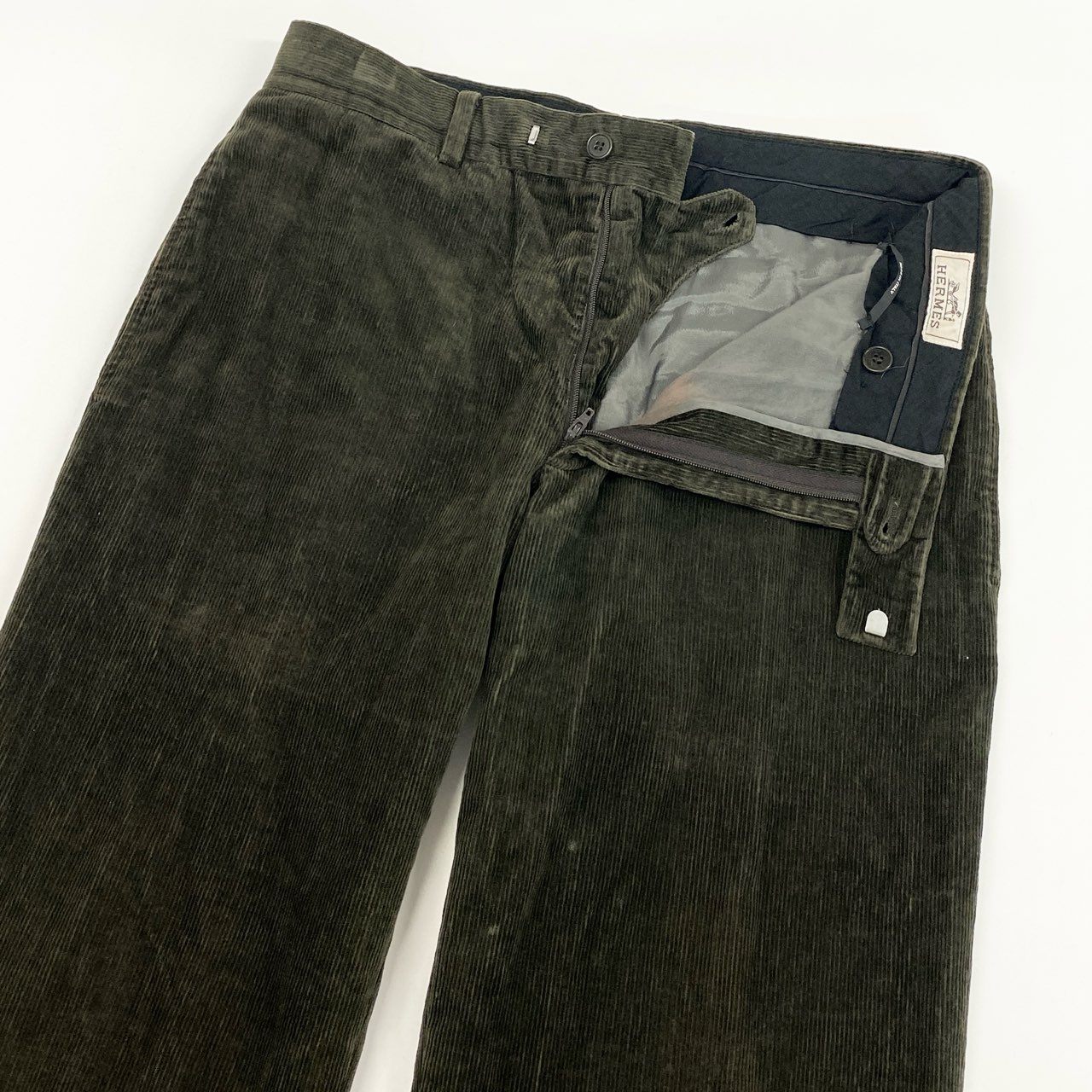 35i9 HERMES エルメス イタリア製 コーデュロイストレートパンツ ボトムス 42 カーキ オリーブ系 メンズk02i