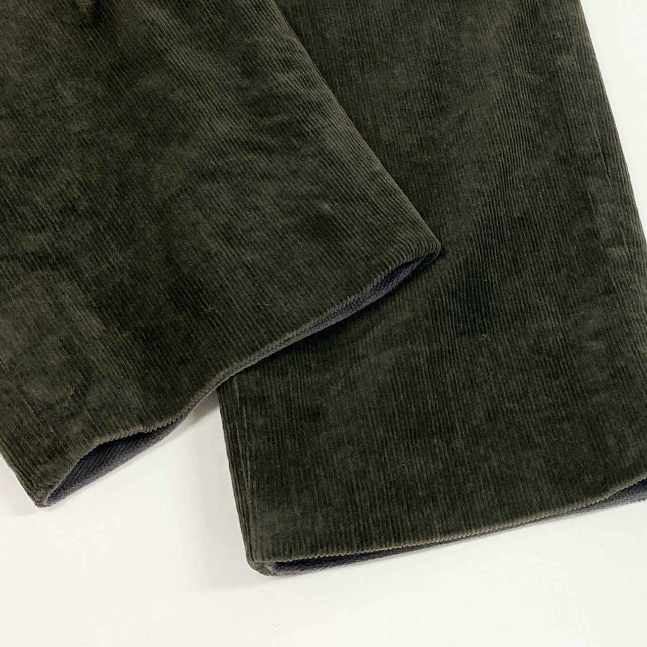 エルメスのストレートパンツで、コーデュロイ素材を使用した一本です。カラーはカーキオリーブ系で、深みのある落ち着いた印象が特徴。柔らかく温かみのある質感で、シーズンムードを高めてくれます。シンプルなストレートラインはジャケットからカジュアルトップスまで幅広く合わせやすく、大人の上質なワードローブに最適です。