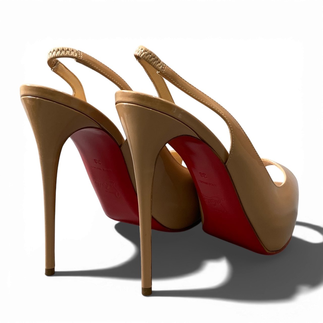 3a5【美品】christianlouboutin クリスチャンルブタン オープントゥ ハイヒール サンダル エナメルパンプス イタリア製 38サイズ ベージュ レザー レディースk02i