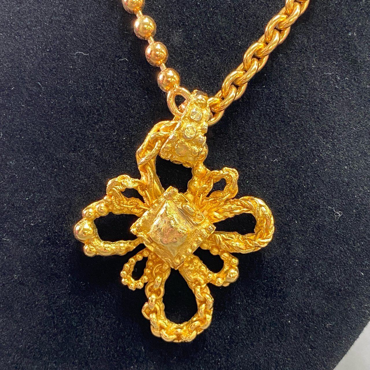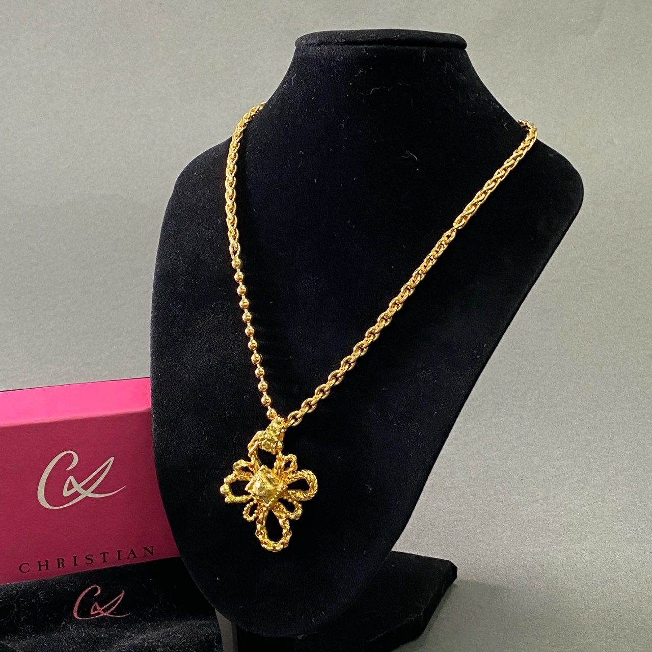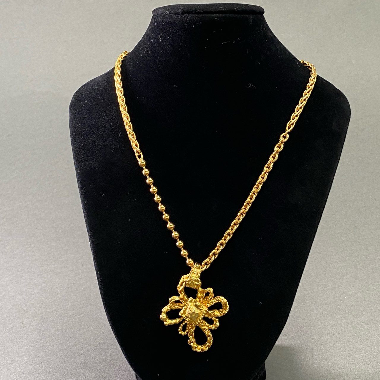 f9③ CHRISTIAN LACROIX クリスチャンラクロワ クロスモチーフ 5チェーン切替 ネックレス 大振り ゴールド レディース コスチームジュエリー
