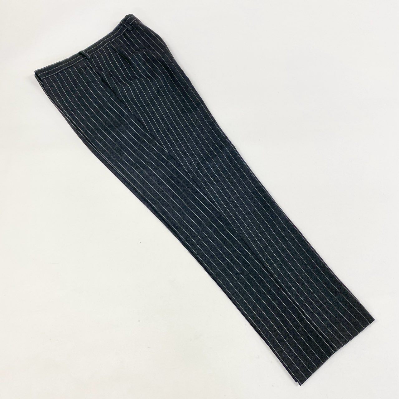 パンツは股上23cmで標準、全体は細すぎないテーパード寄りのバランスです。