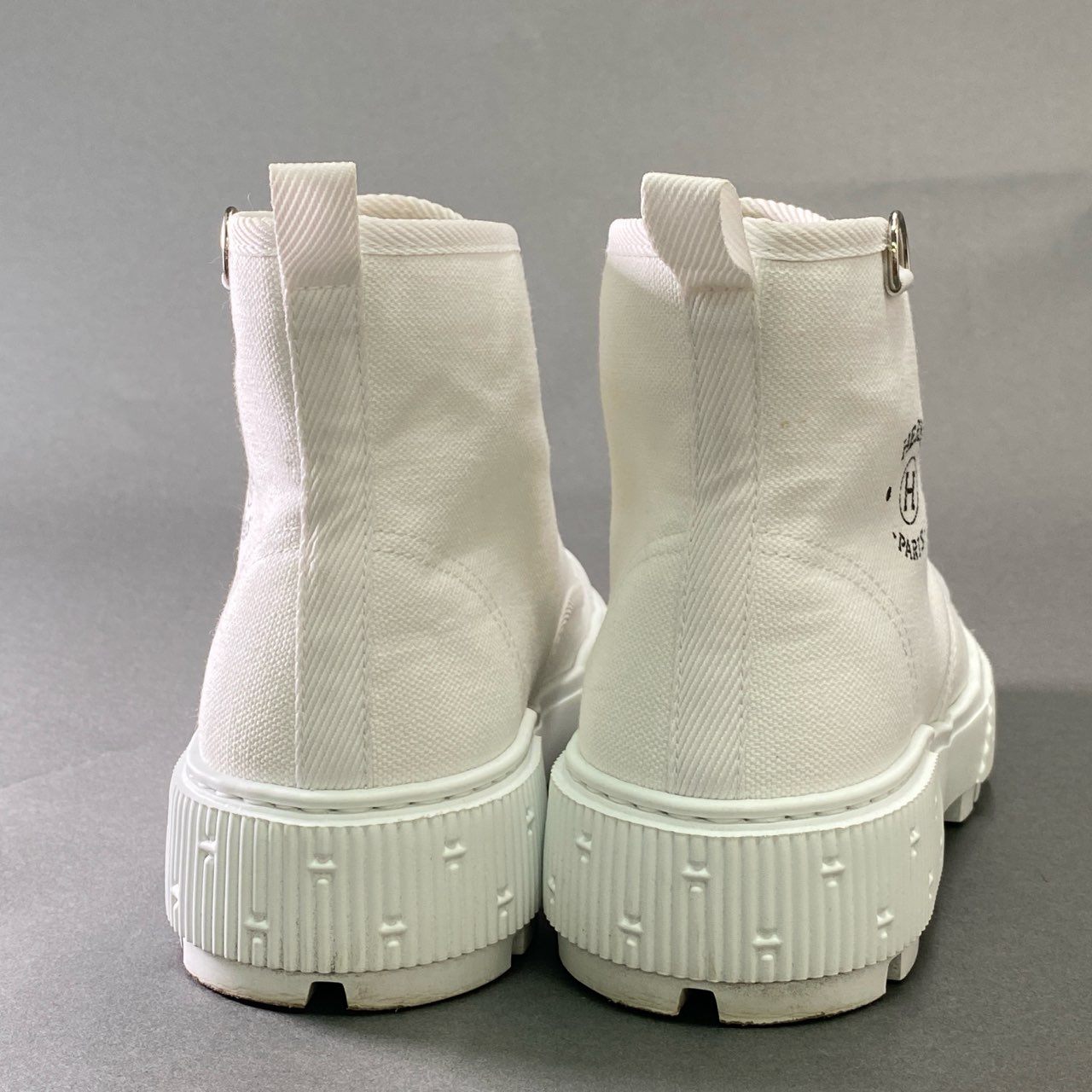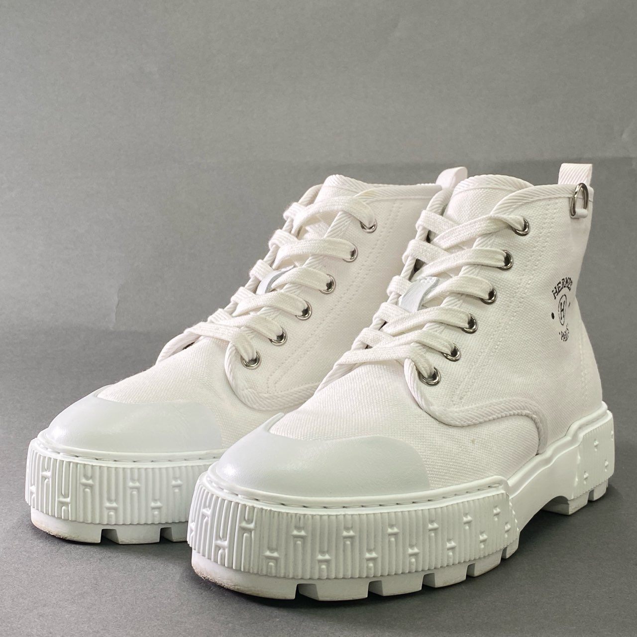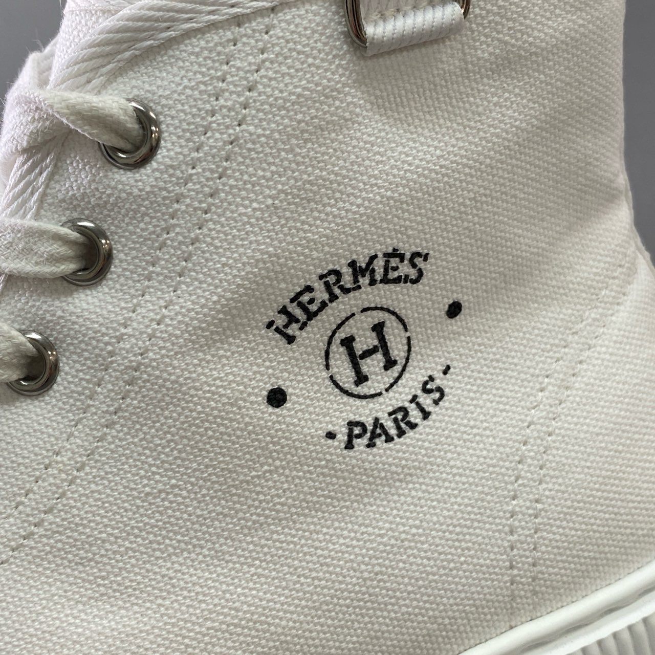 j4 HERMES エルメス イティネレール ショートブーツ ハイカットスニーカー ロゴプリント イタリア製 36 ホワイト キャンバスk02i