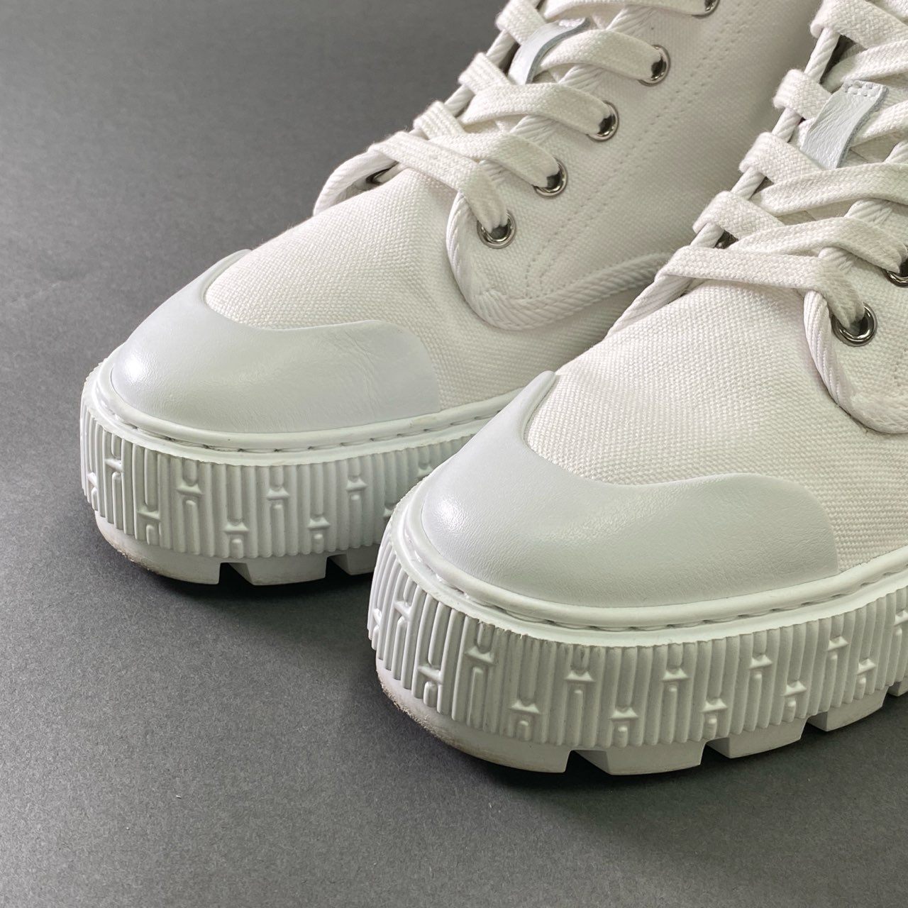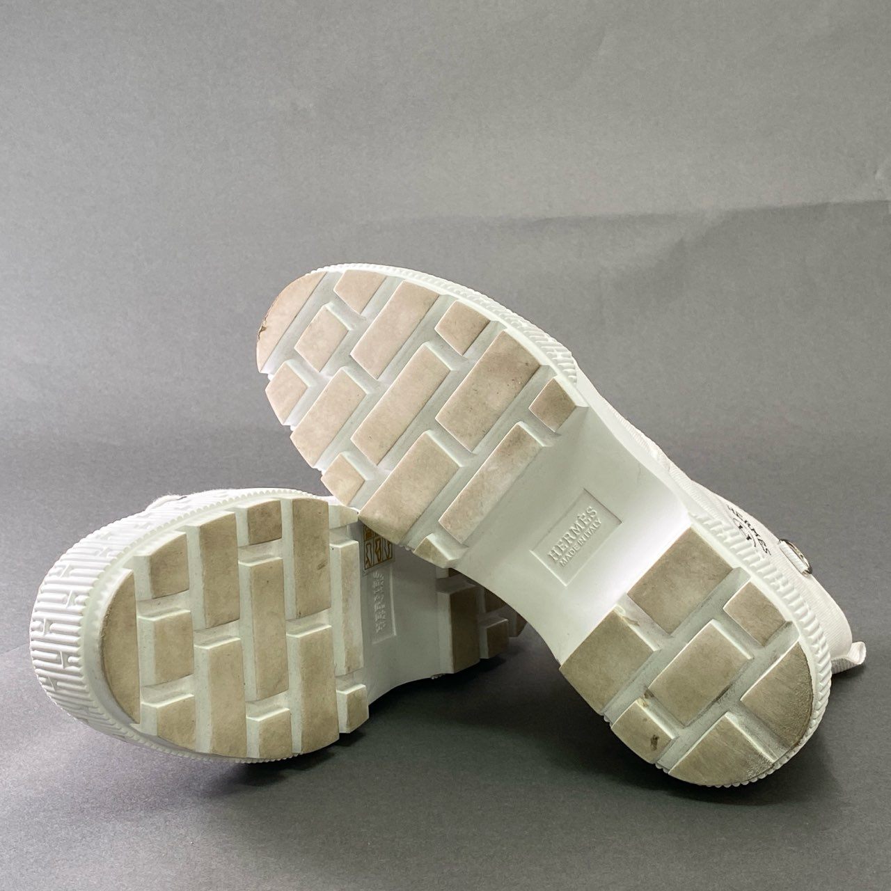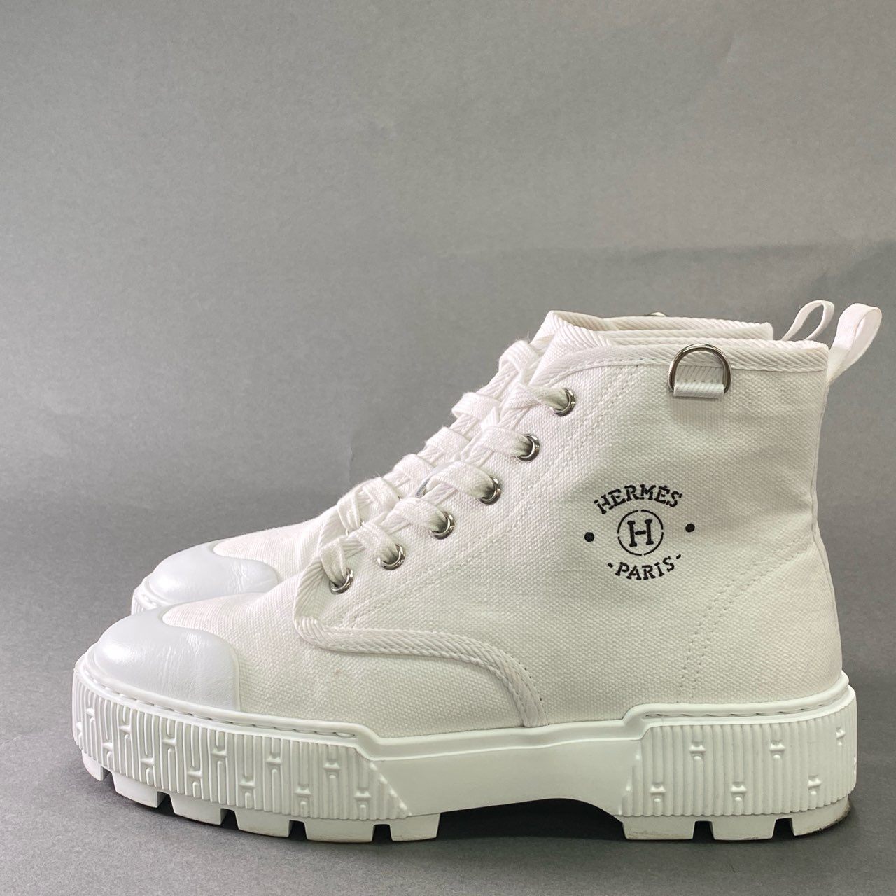 j4 HERMES エルメス イティネレール ショートブーツ ハイカットスニーカー ロゴプリント イタリア製 36 ホワイト キャンバスk02i