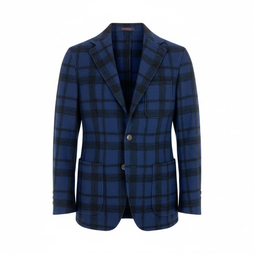 7L5【美品】THE GIGI ザジジ ANGIE MI テーラードジャケット シングルジャケット チェック柄 イタリア製 42サイズ ネイビー ブラック メンズu02t