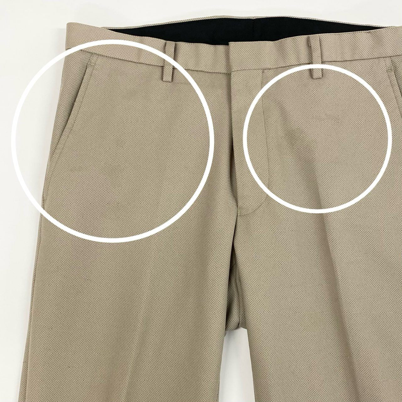 パンツは股下71cm・裾幅18cmのすっきりとしたテーパードラインで、ビジネスからスマートカジュアルまで対応します。