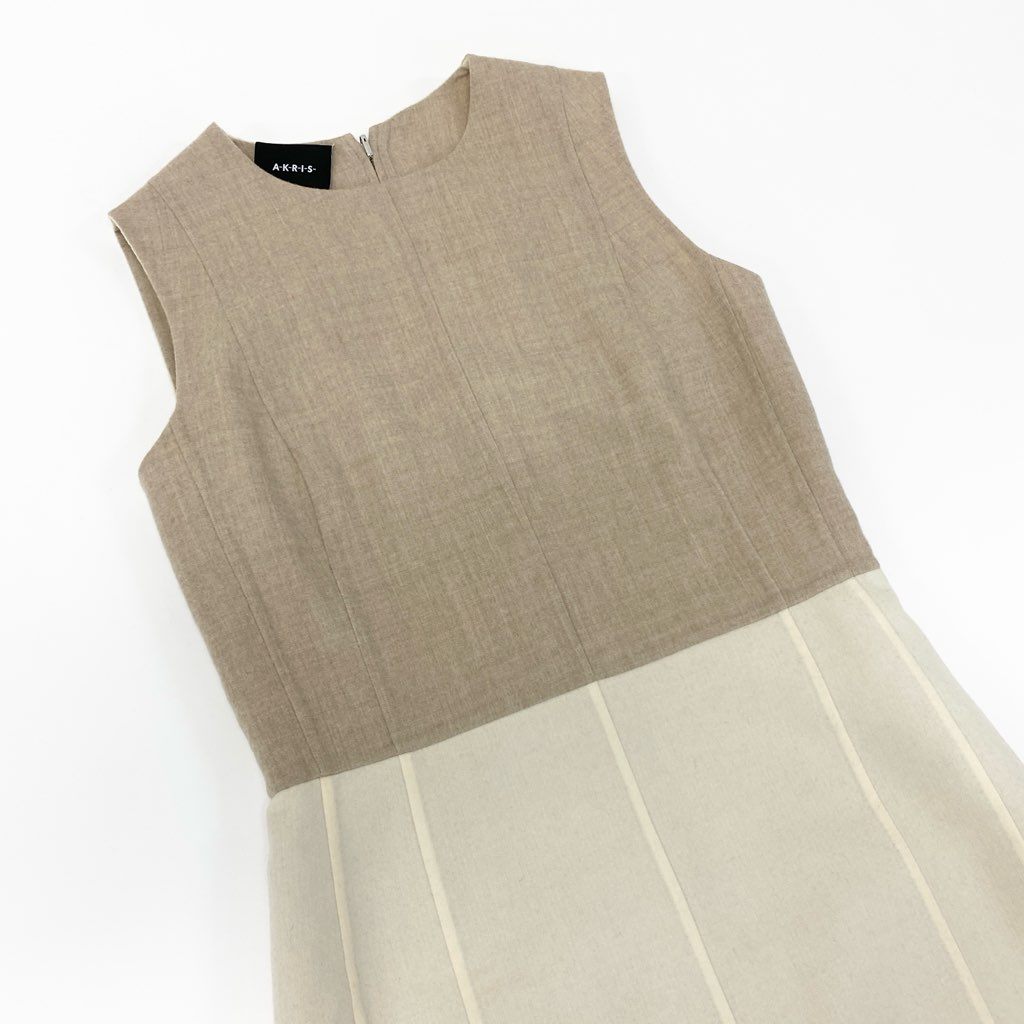 81L15 AKRIS アクリス ノースリーブワンピース バイカラーワンピース ウールワンピース 40サイズ ベージュ アイボリー ウール100% レディースu02t