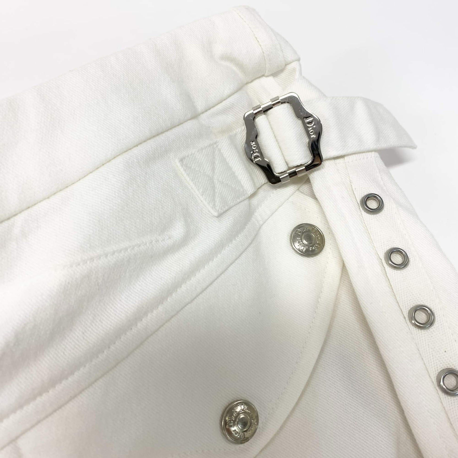 クリスチャンディオール の2003年ヴィンテージアーカイブ、レースアップデザインが印象的なスカートです。カラーは清潔感のあるホワイトで、無地ながらフロントのレースアップ×メタルパーツがアクセント。ハリ感のあるコットン系素材でシルエットが美しく保たれます。きれいめからモード寄りのスタイリングまで対応し、ジャケットやシャツ合わせで洗練された大人のコーデが完成します。