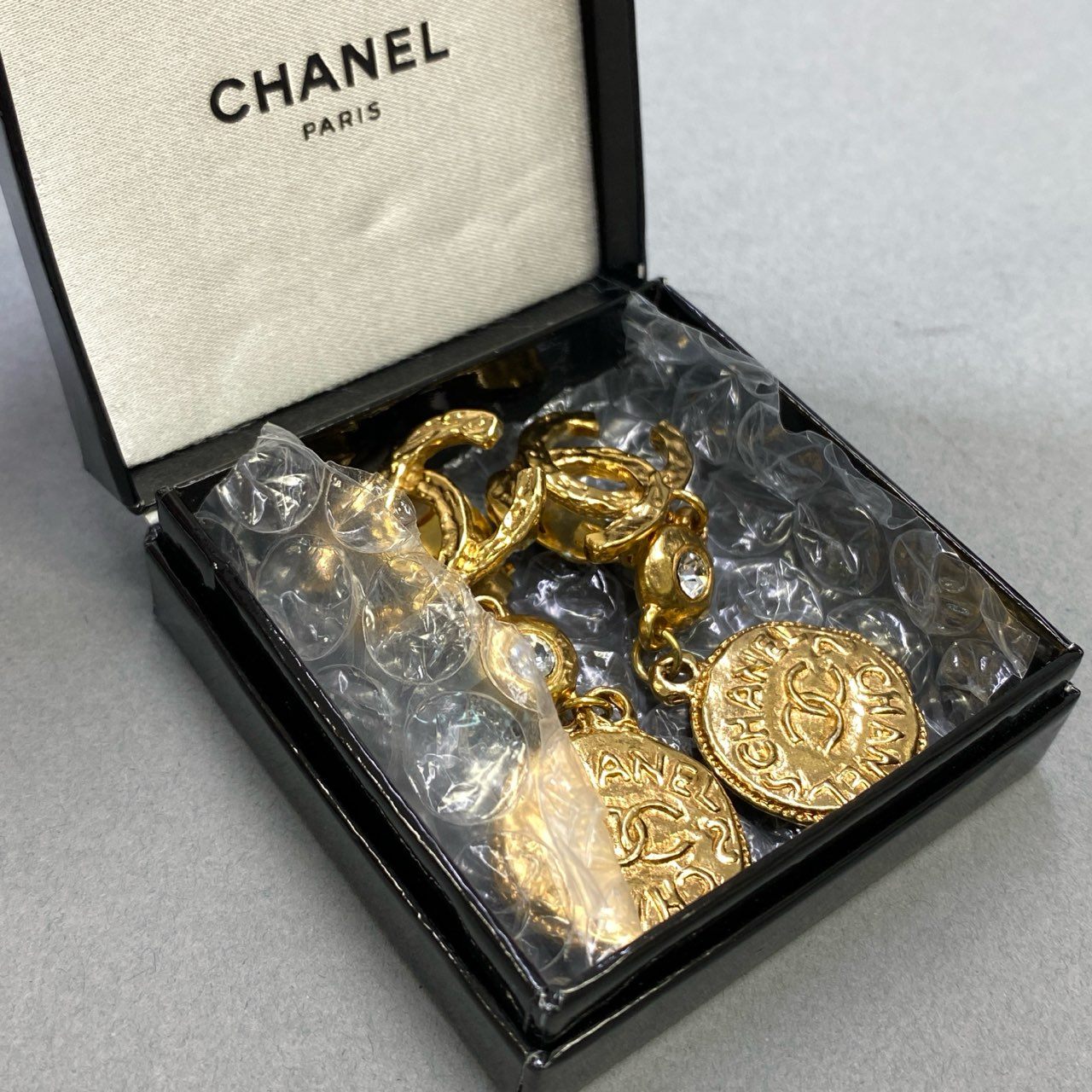 j15 CHANEL シャネル Vintage CC Gold Earring ヴィンテージ イヤリング ゴールド ココマーク Accessory 箱付きt18r