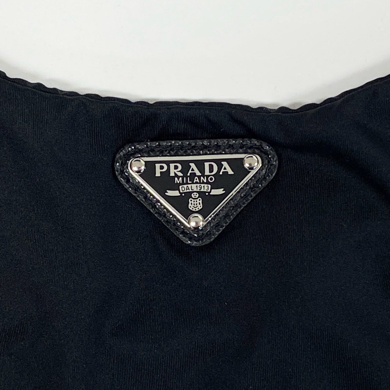 ミニマルなブラックカラーが印象的なPRADAのストレッチトップスです。 表面はマットでなめらかなジャージー素材を使用し、快適な着心地を実現。 フロントにはアイコニックなトライアングルロゴプレートをあしらい、さりげないブランド感を演出します。 シャツやジャケットのインナー、1枚での着用など、モードなスタイリングに映えるアイテムです。