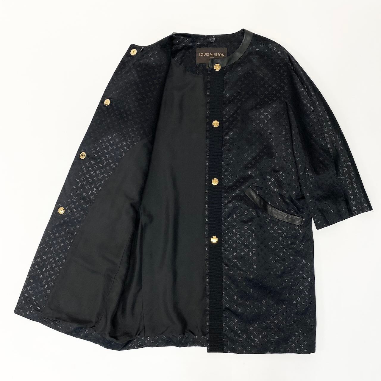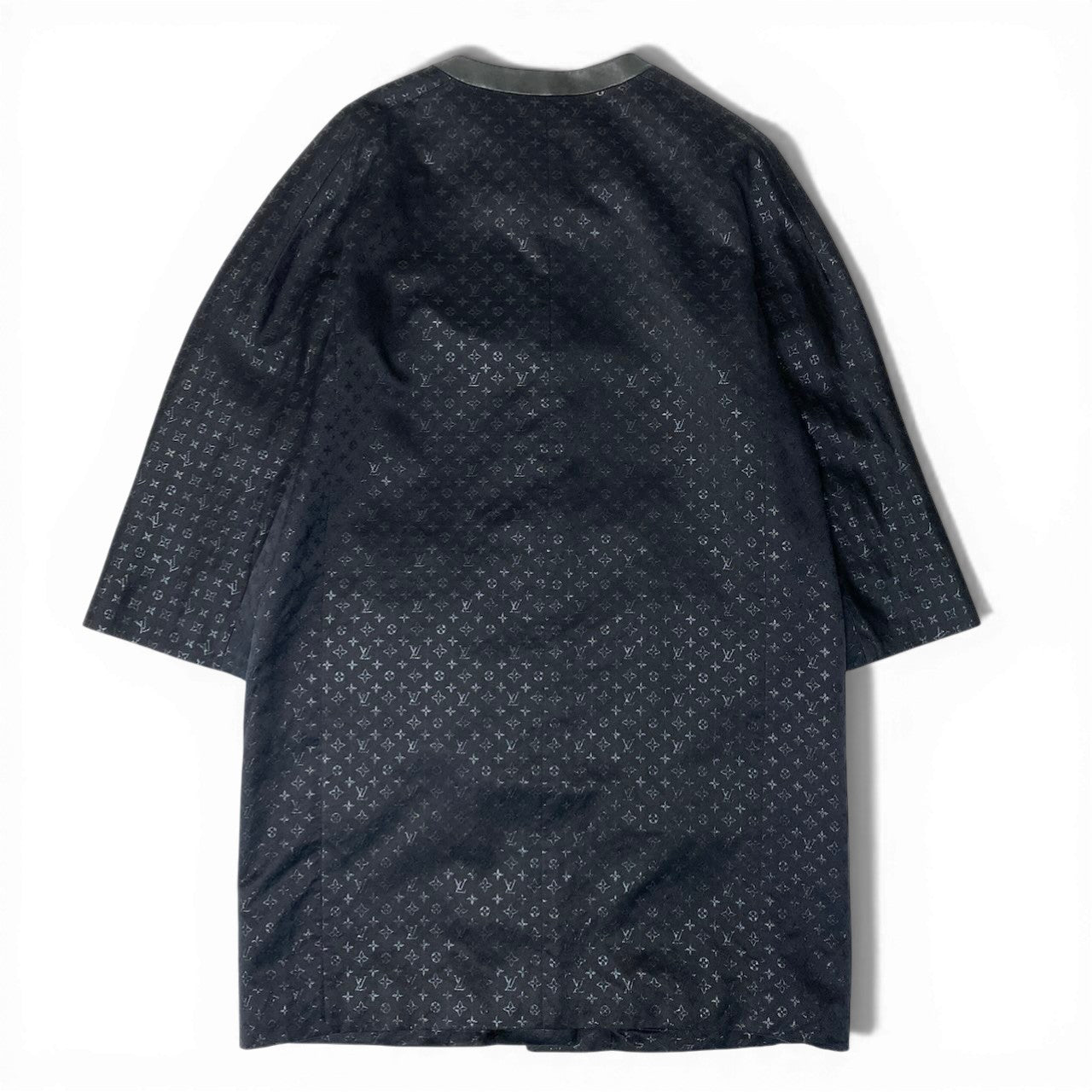 I LOUIS VUITTON ルイヴィトン モノグラムロングコート ノーカラー シルク混 イタリア製 42サイズ ブラック レディース 女性用nu1