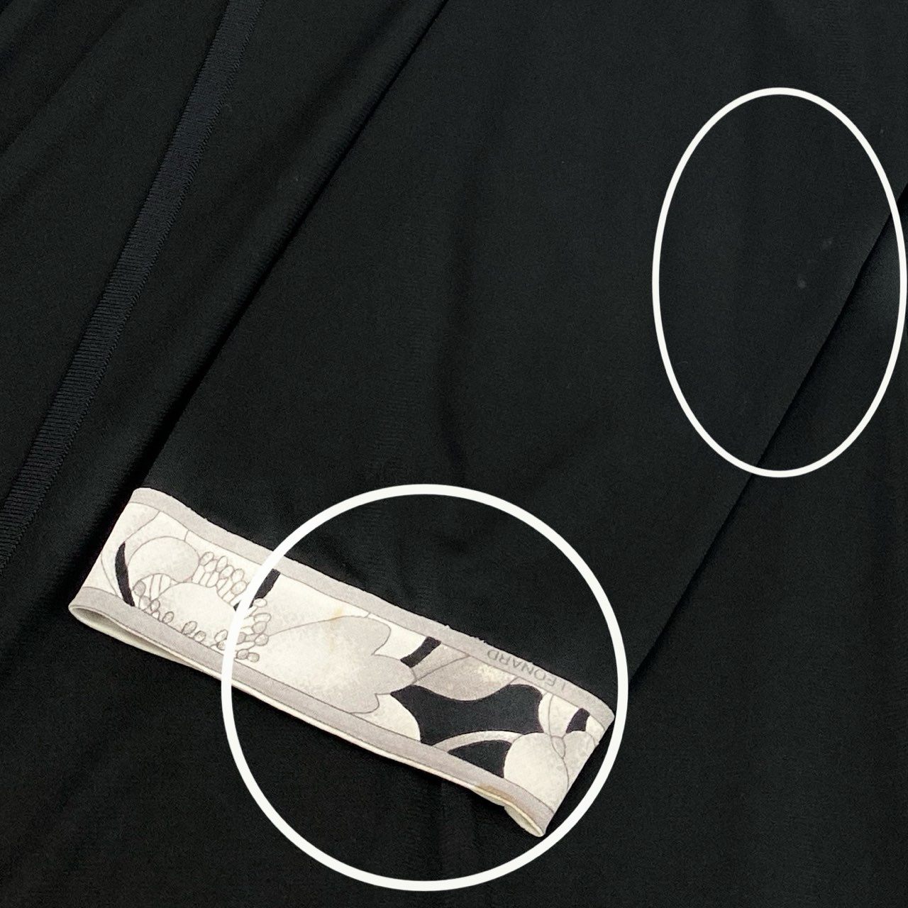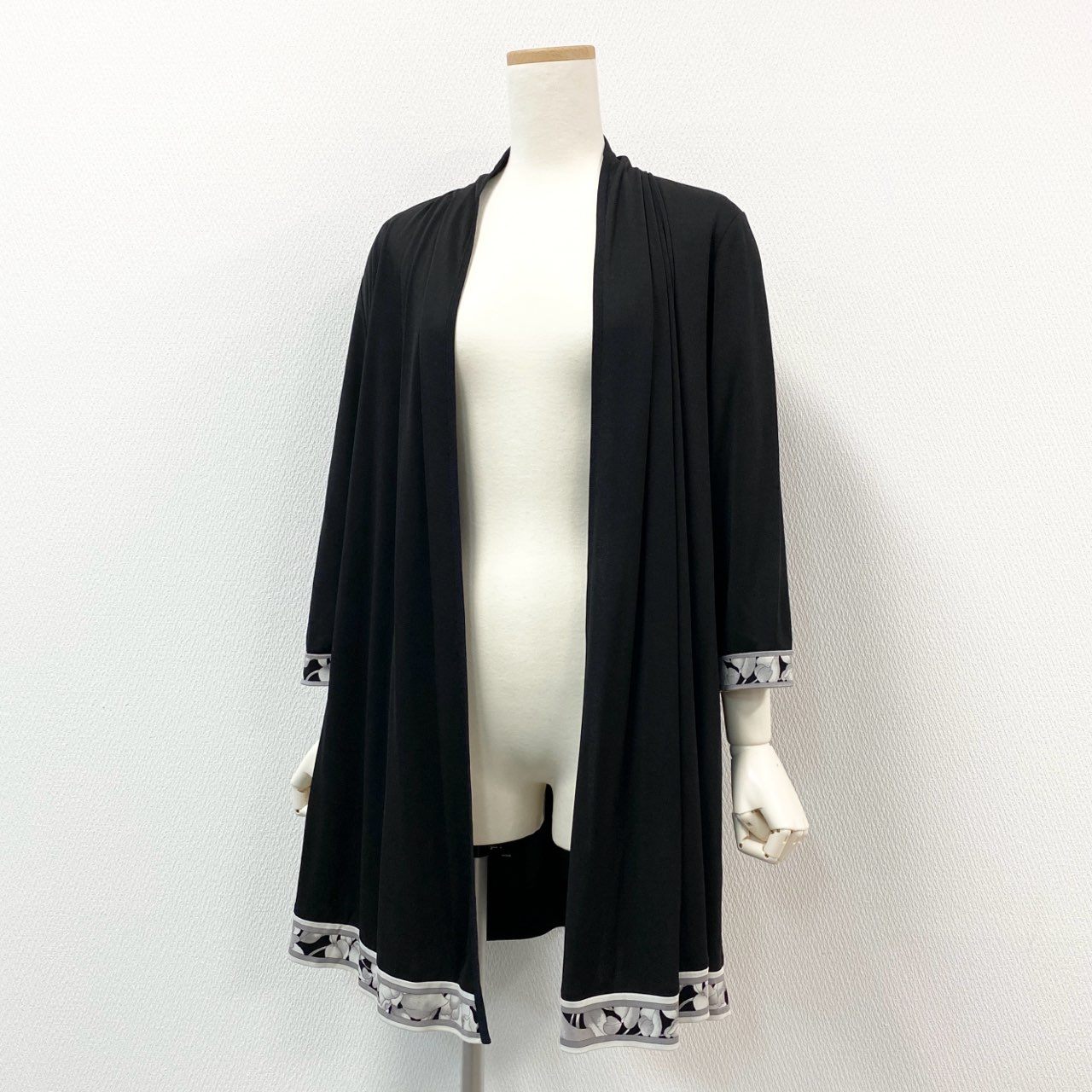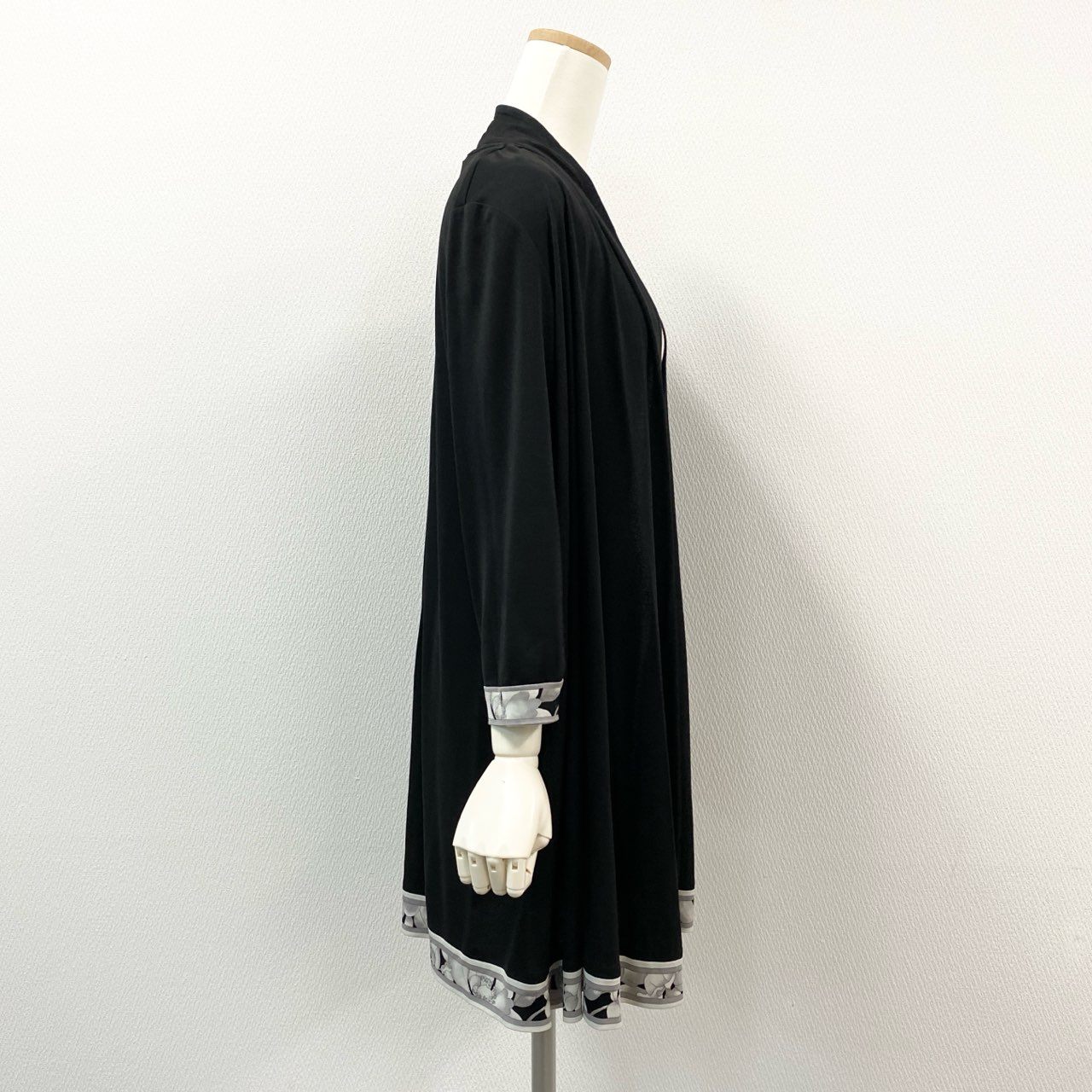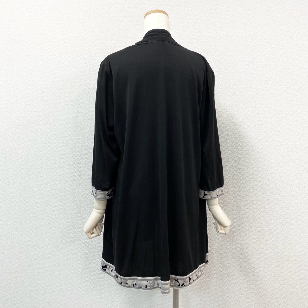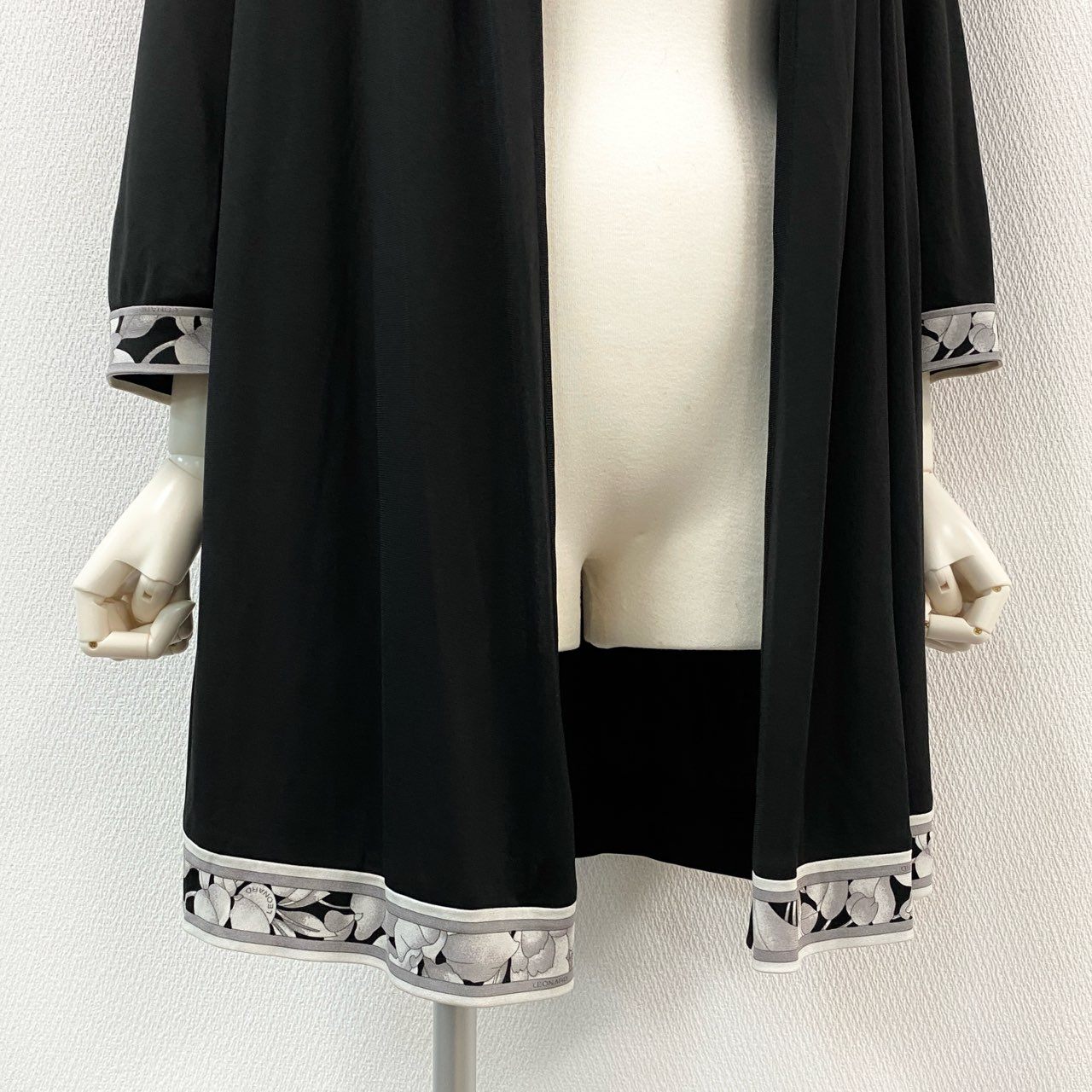 86i11 LEONARD レオナール カンカン素材 ロングカーディガン 羽織り モノトーン 美しい花柄プリント サイズ40 ブラック レディースu02t