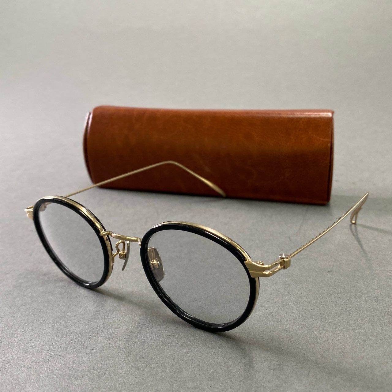 f6 《美品》 金子眼鏡 カネコメガネ ボストン メタルシリーズ KM-66L 16□21 ブラック ゴールド アイウェア ハードケース付き