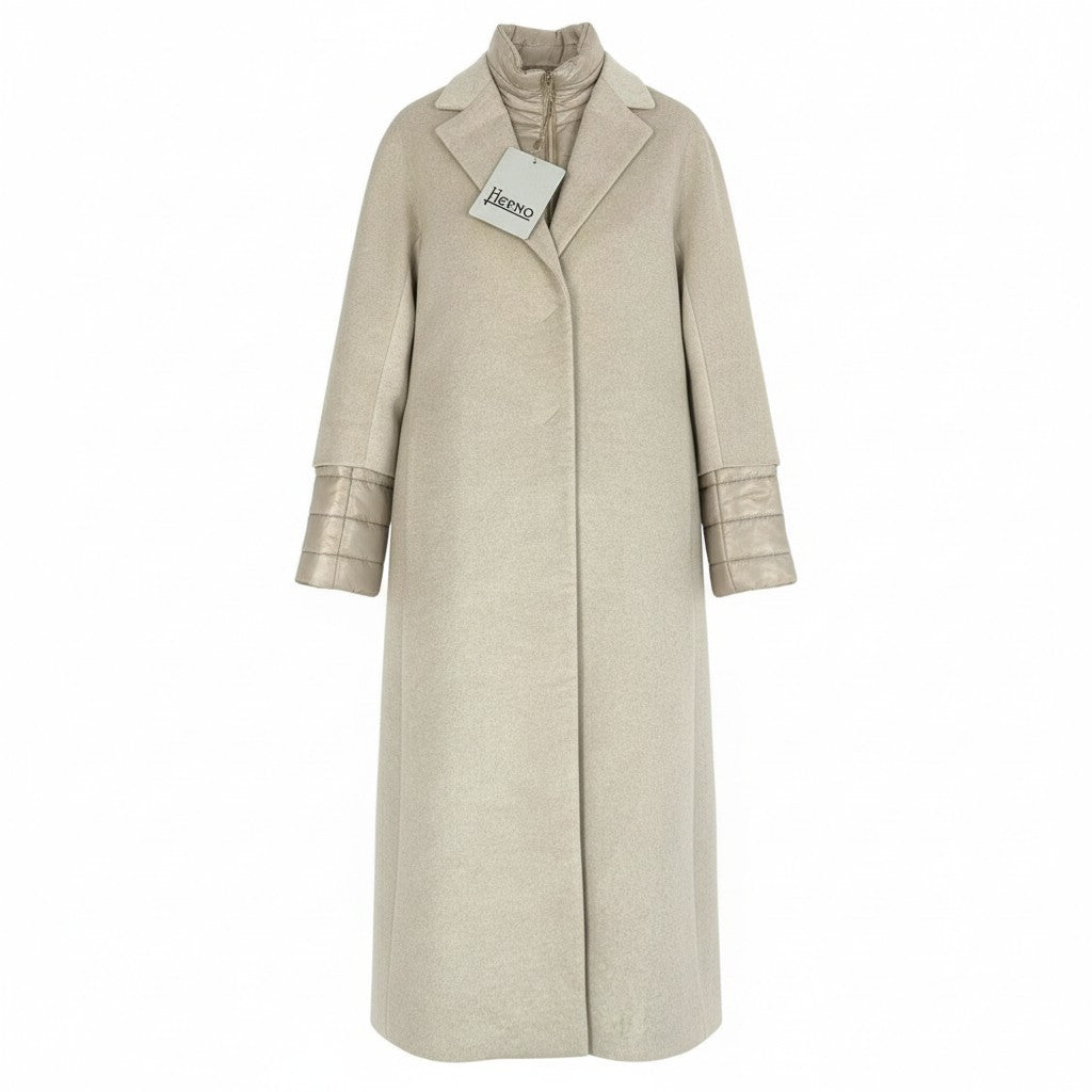 37a19 【未使用】 HERNO ヘルノ ピュアカシミア & ナイロンウルトラライトコート チェスターコート 2way ロング レディース 女性用 サイズ42 ライトベージュu02t