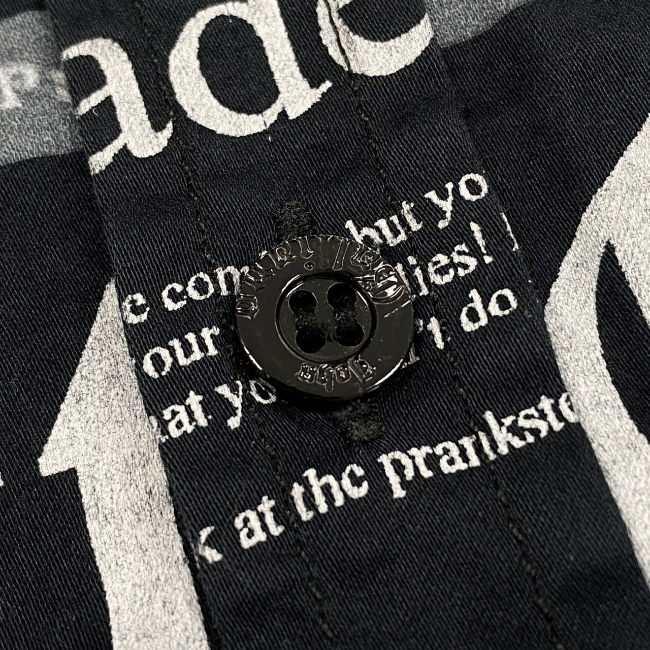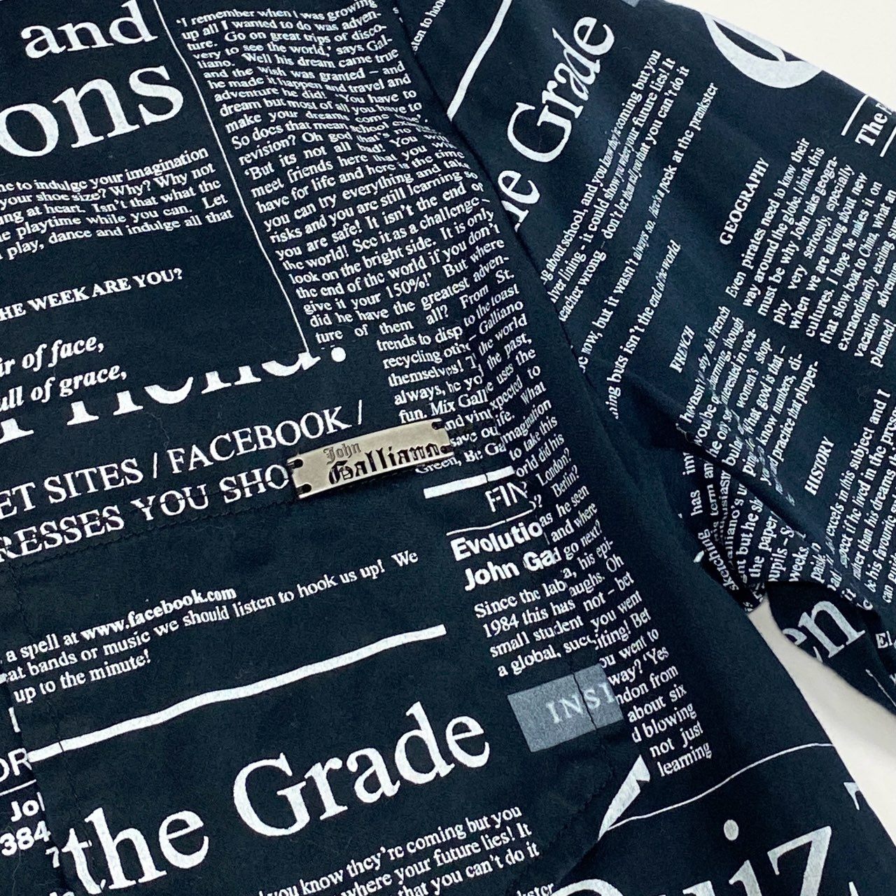 Ab10【美品】John Galliano ジョンガリアーノ ヴィンテージ ロングスリーブボタンダウンシャツ ニュースペーパー柄 12サイズ ブラック ホワイト メンズ 男性用k02i