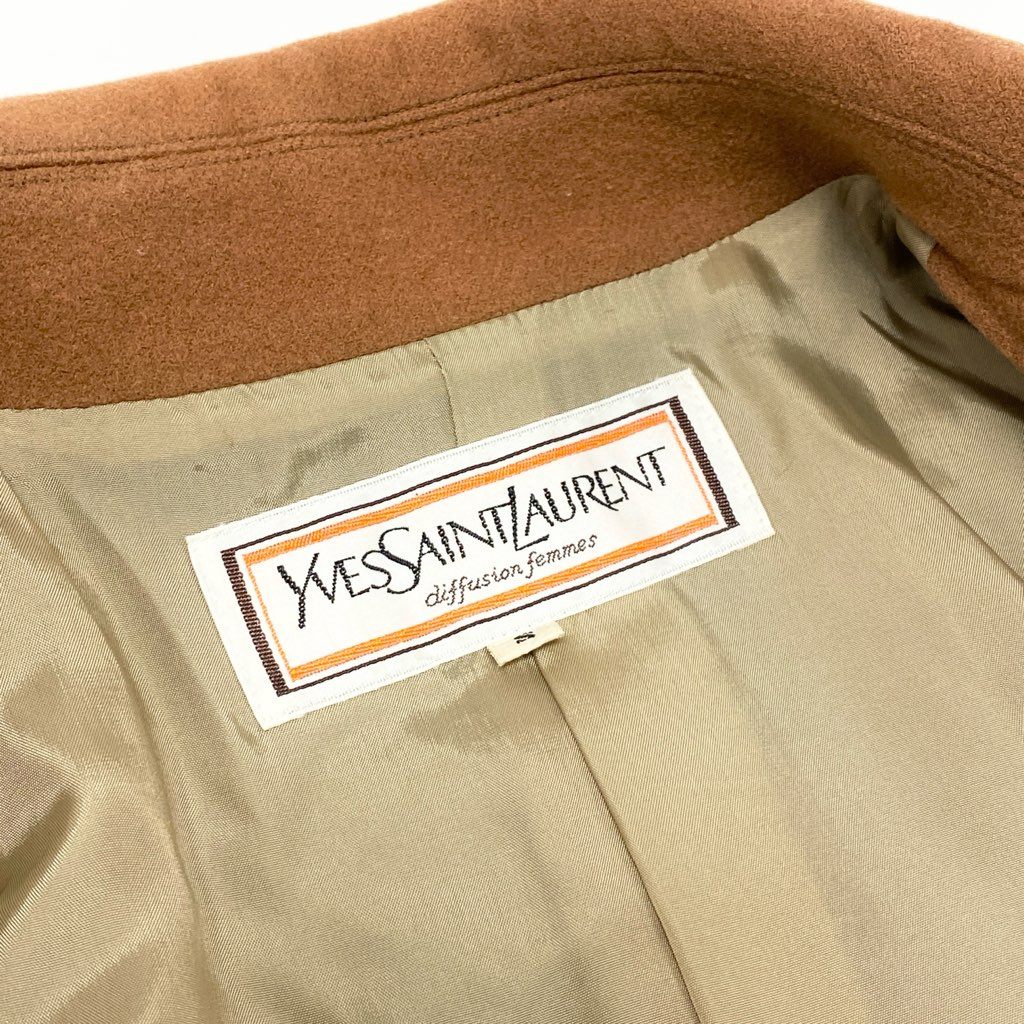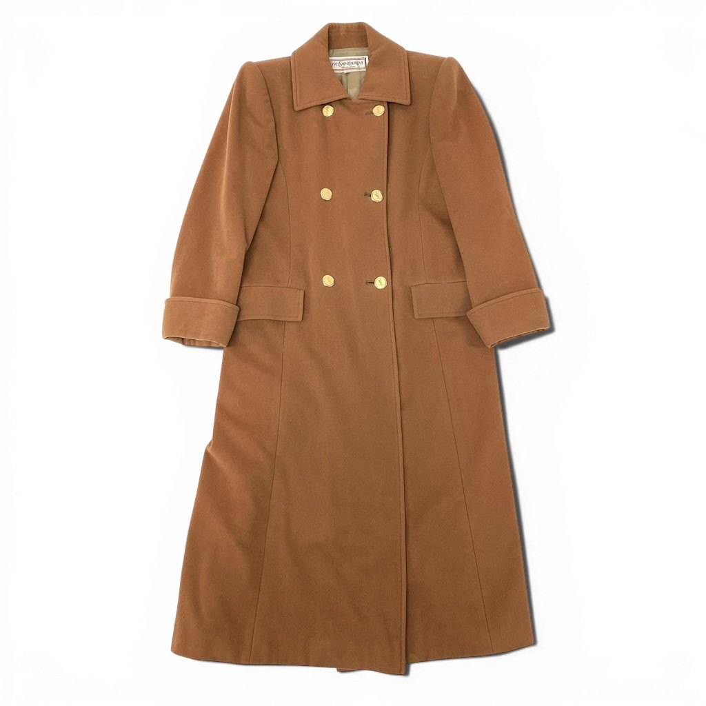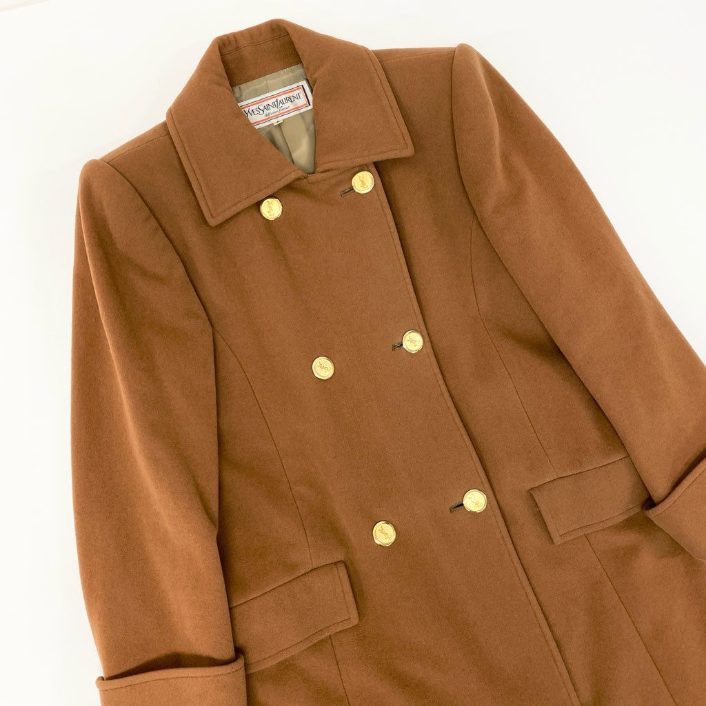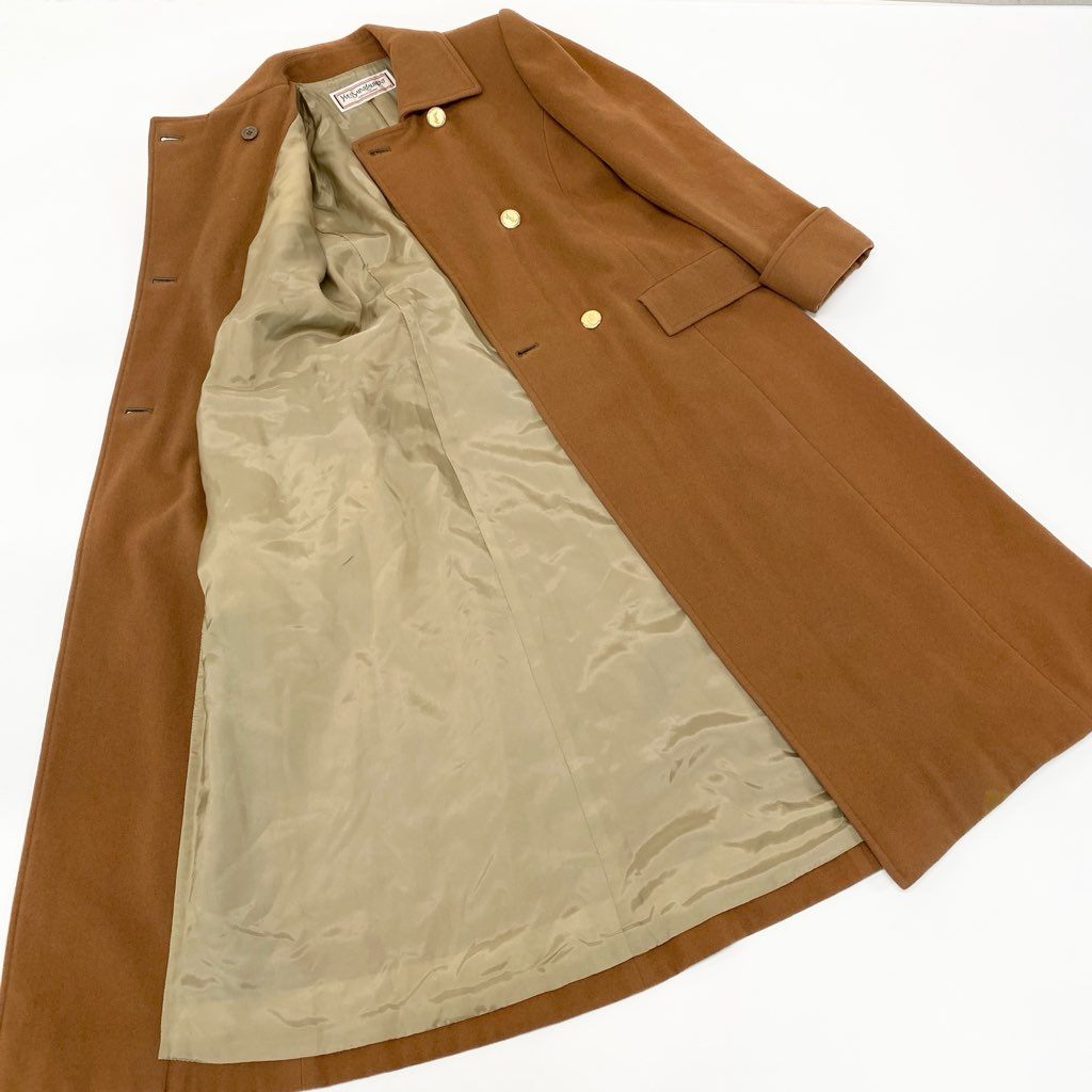3l27 YVES SAINT LAURENT イヴサンローラン YSL 金ボタン ウールロングコート サイズS キャメル 画像参照 Vintage ヴィンテージ レトロ 女性服t18r