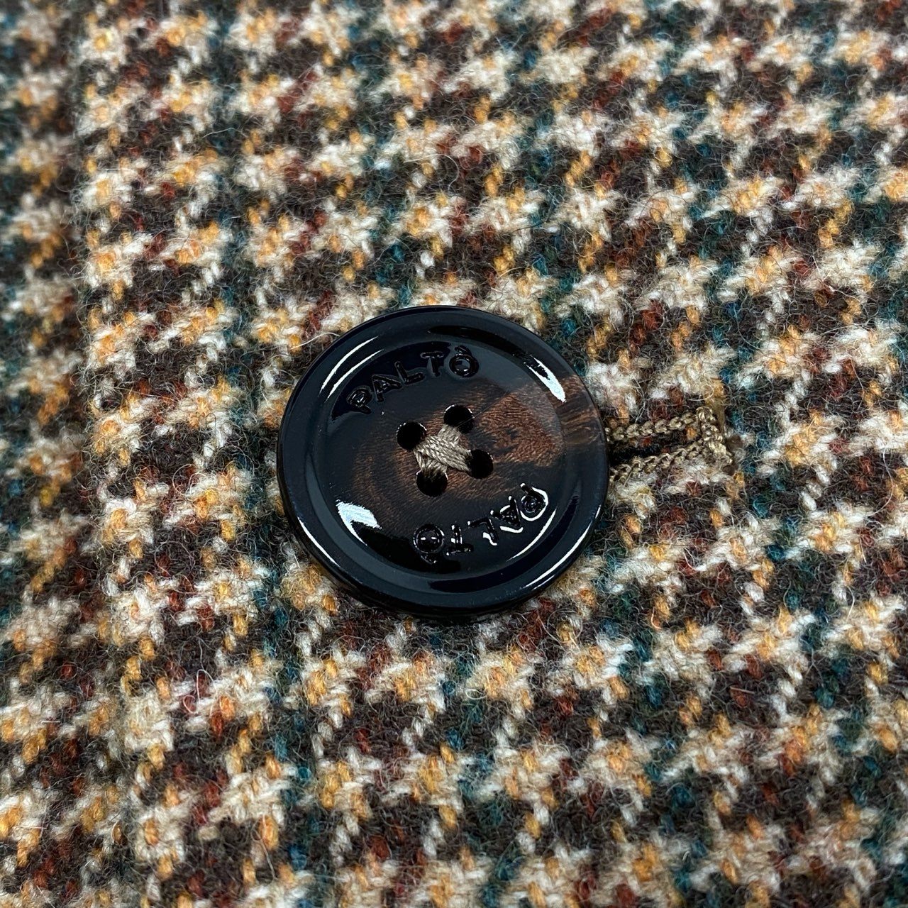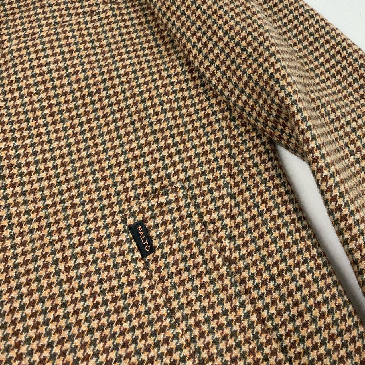 イタリアブランドPALTOらしい洗練された佇まいの、ブラウン系ハウンドトゥース柄チェスターコートです。細かな千鳥格子柄が上品で、クラシックかつモダンな印象を演出します。素材はマットで温かみのあるウール系生地で、秋冬シーズンに最適な着心地です。ミドル丈のため取り回しが良く、スーツにもカジュアルにも合わせやすい一着。ジャケパンスタイルやニット×スラックスの大人コーデにおすすめです。