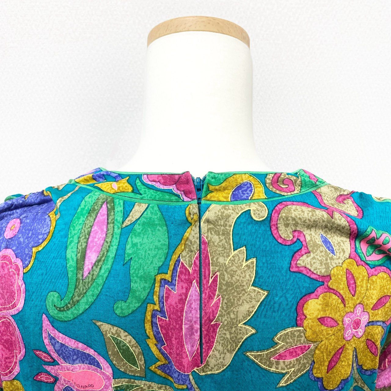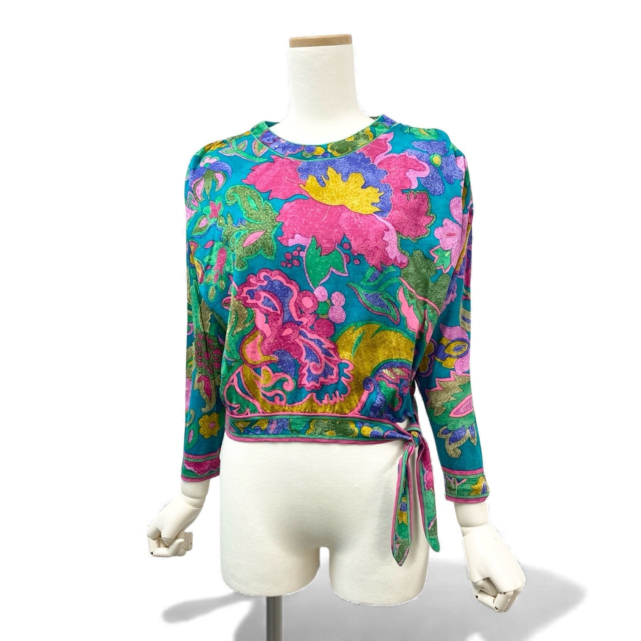 【ブランド】LEONARD レオナール ロングスリーブ カットソー 美しい花柄プリント ドルマンスリーブ 裾リボン レディース