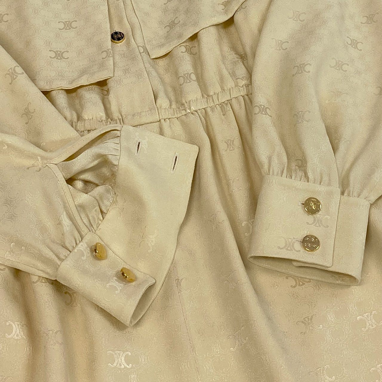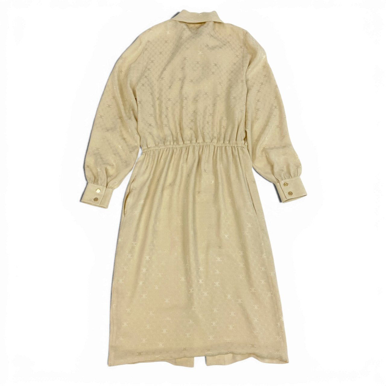 b23 CELINE セリーヌ ラヴァリエール トリオンフ柄 ボウタイ シルクワンピース ロングワンピース サイズ36 アイボリー レディース 女性用ta1
