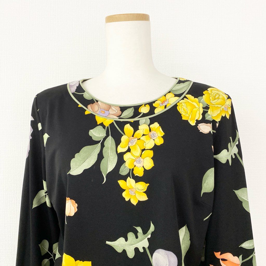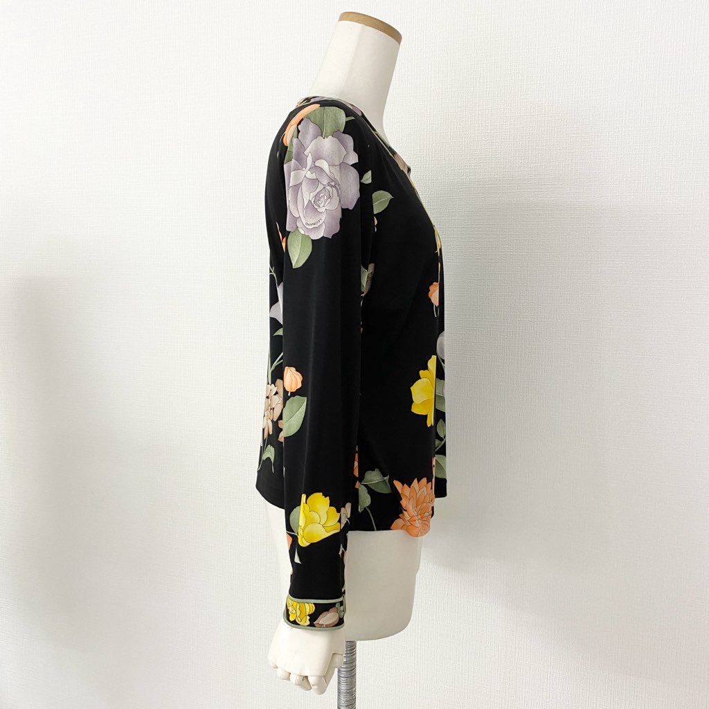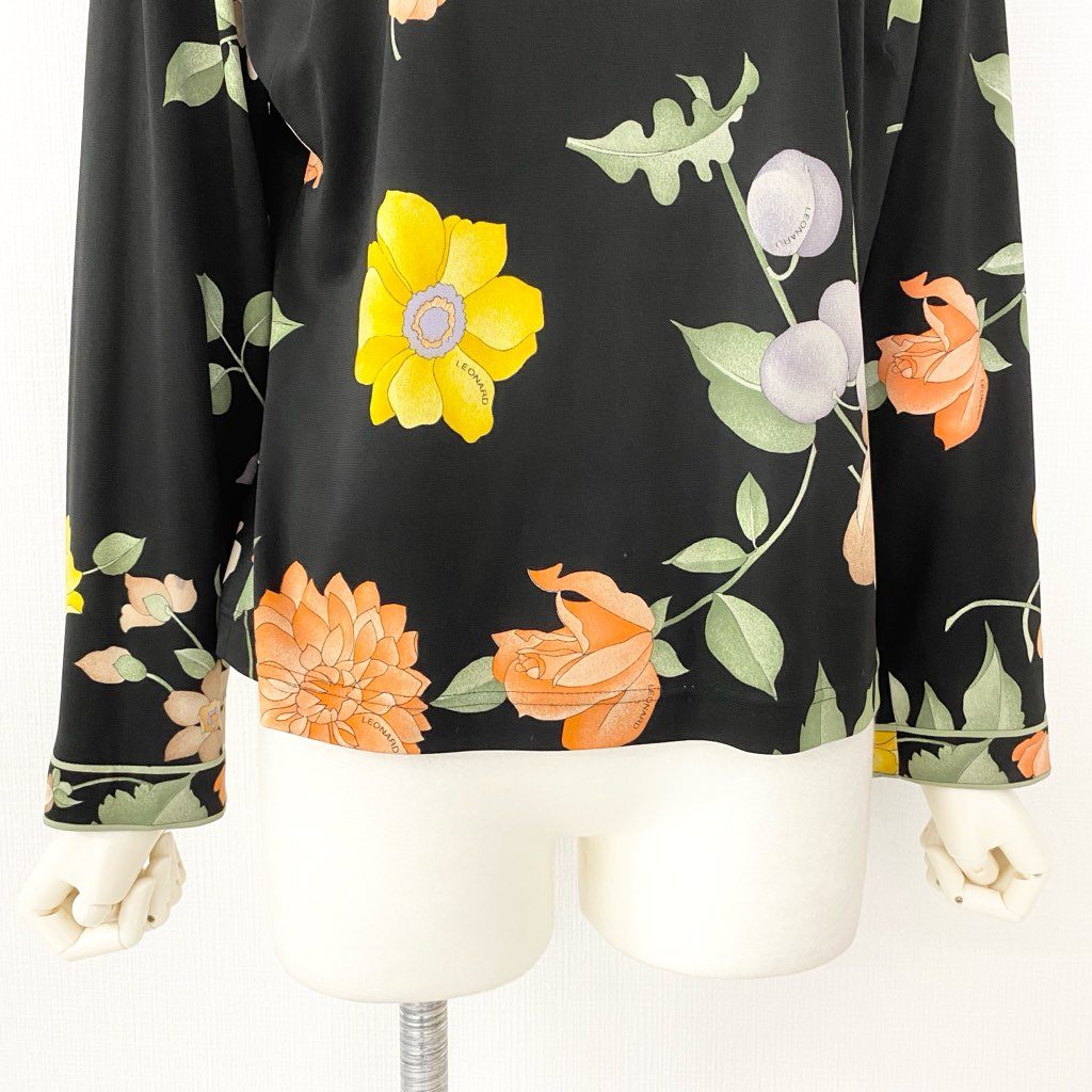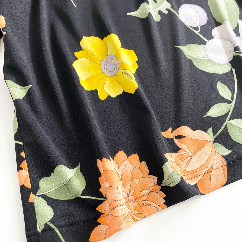 21d9 LEONARD レオナール カンカン素材 長袖カットソー Tシャツ トップス 美しい花柄プリント LL ブラック レディース 日本製