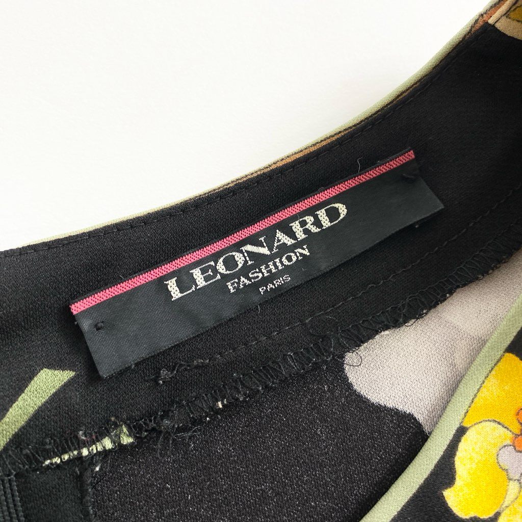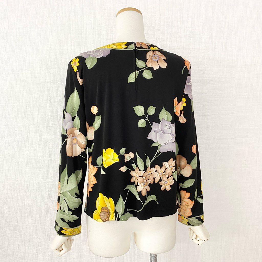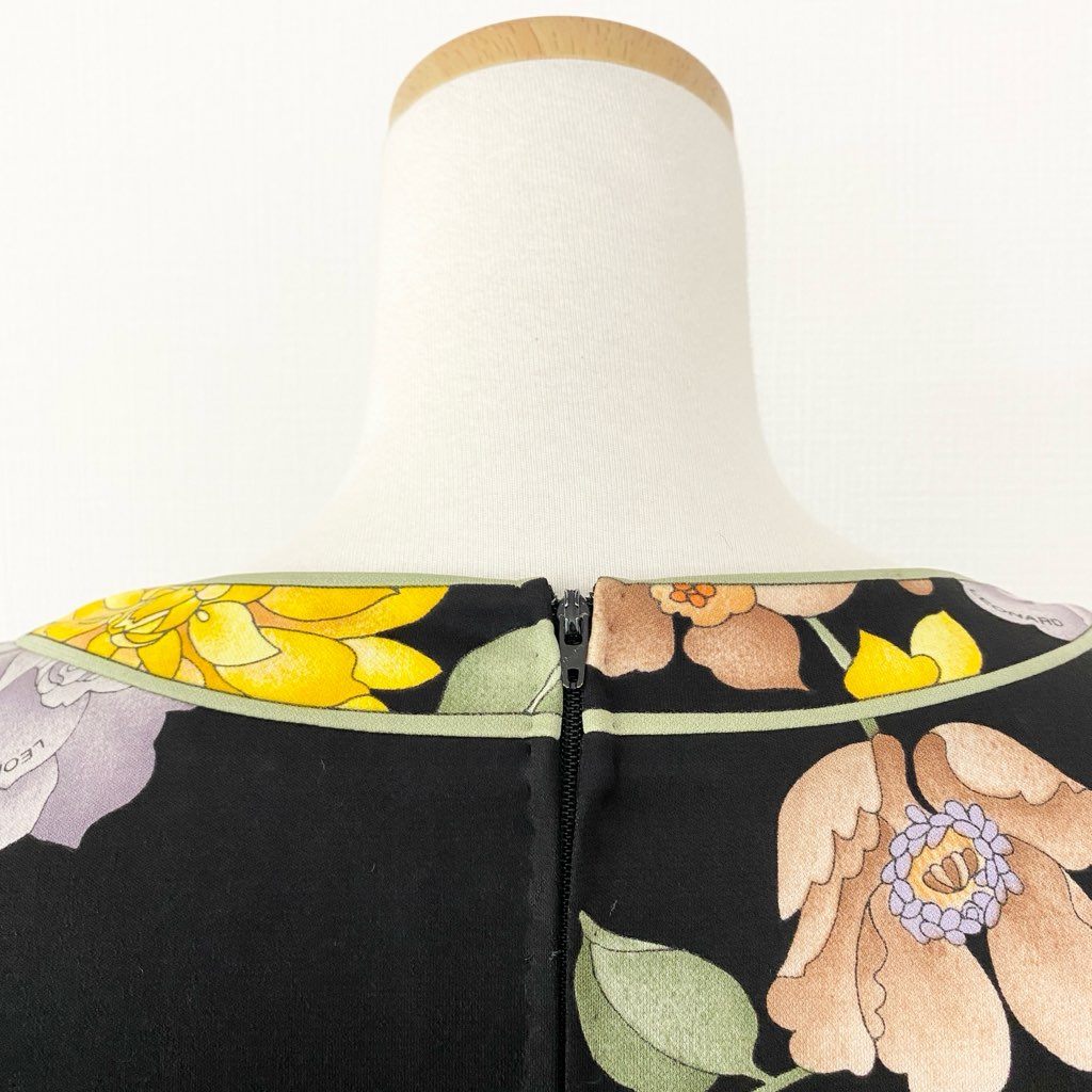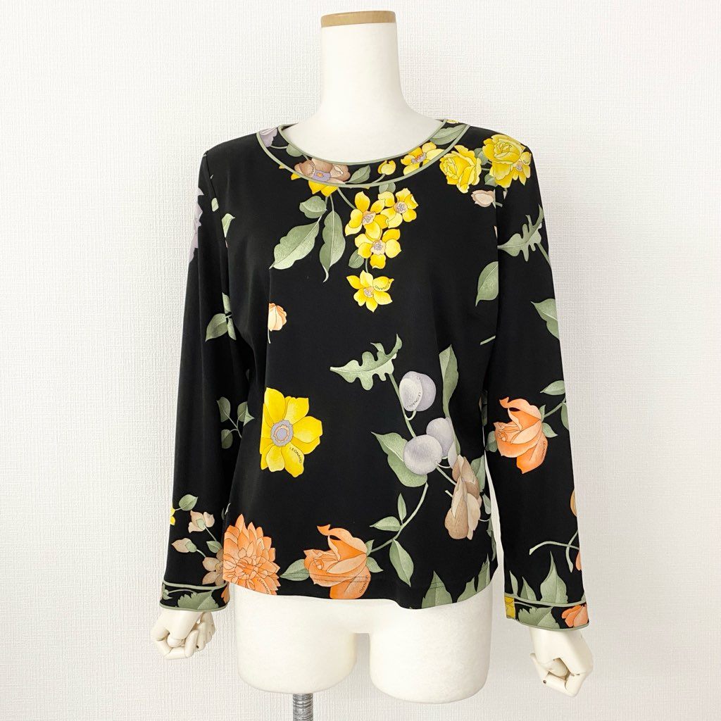 21d9 LEONARD レオナール カンカン素材 長袖カットソー Tシャツ トップス 美しい花柄プリント LL ブラック レディース 日本製