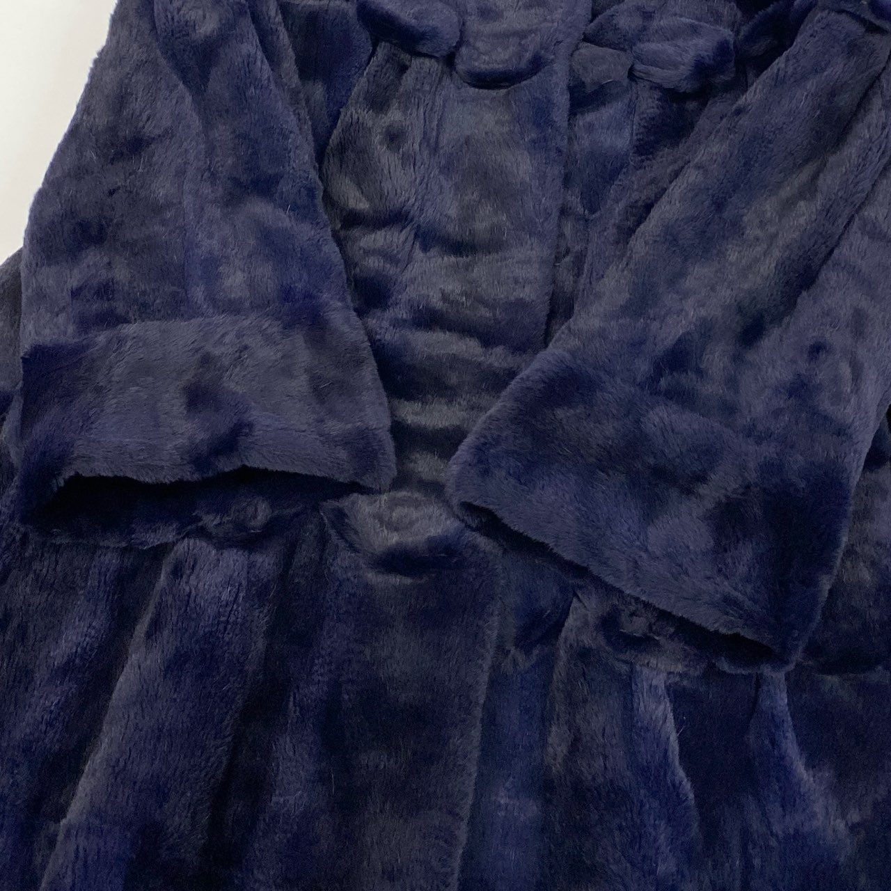 深みのあるミッドナイトネイビーが上品に映える、シェアードミンク仕立てのロングコートです。毛足を短く整えた滑らかな質感と、美しい光沢が特徴的。ヨーク部分にスカラップ状のデザインを施し、立体感と優雅さをプラスしています。クラシカルなスタンドカラーが首元をすっきりと見せ、フォーマルから特別なシーンまで幅広く活躍。大人のエレガンスを際立たせる一着です。
