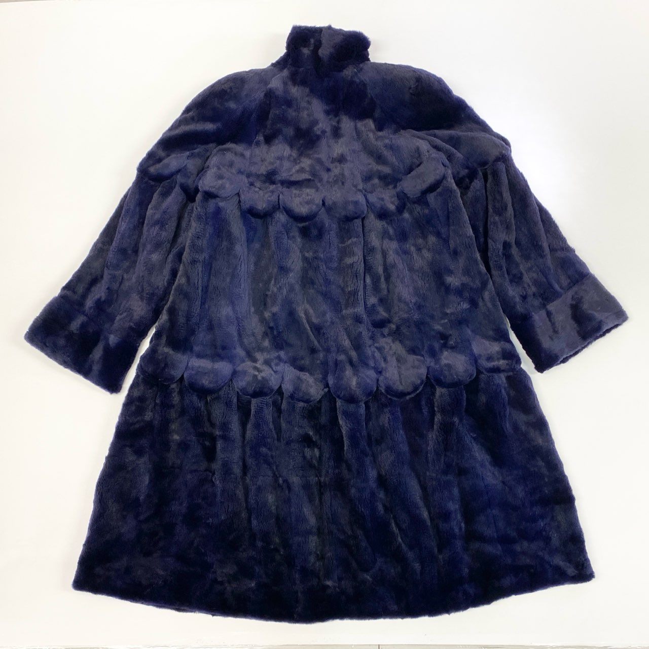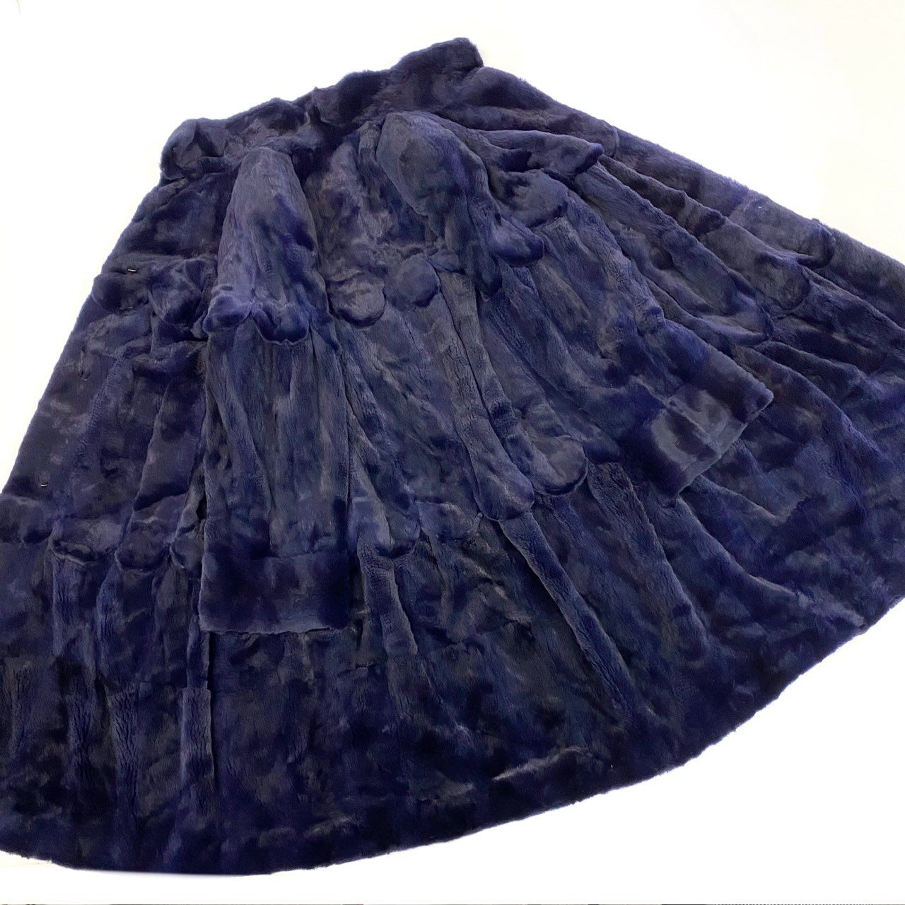 9k2《超希少》 シェアード 染めミンク フリルデザイン 超ロングコート 112cm ダークパープル 最高級本毛皮 MINK FUR COAT レアデザインt18r