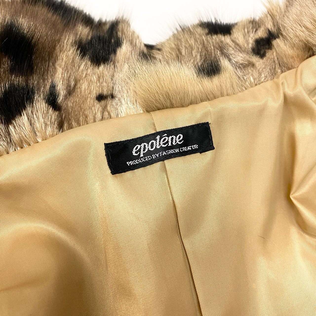 epoleneのブルーフォックス本毛皮ファーコートです。ベージュブラウンをベースにブラックのレオパード柄染めを施した、存在感のあるデザイン。毛足が長くふんわりとしたブルーフォックスならではのボリューム感と高級感が魅力です。ショート丈でバランスが取りやすく、ドレススタイルやパーティーシーンにも映える華やかな一着です。