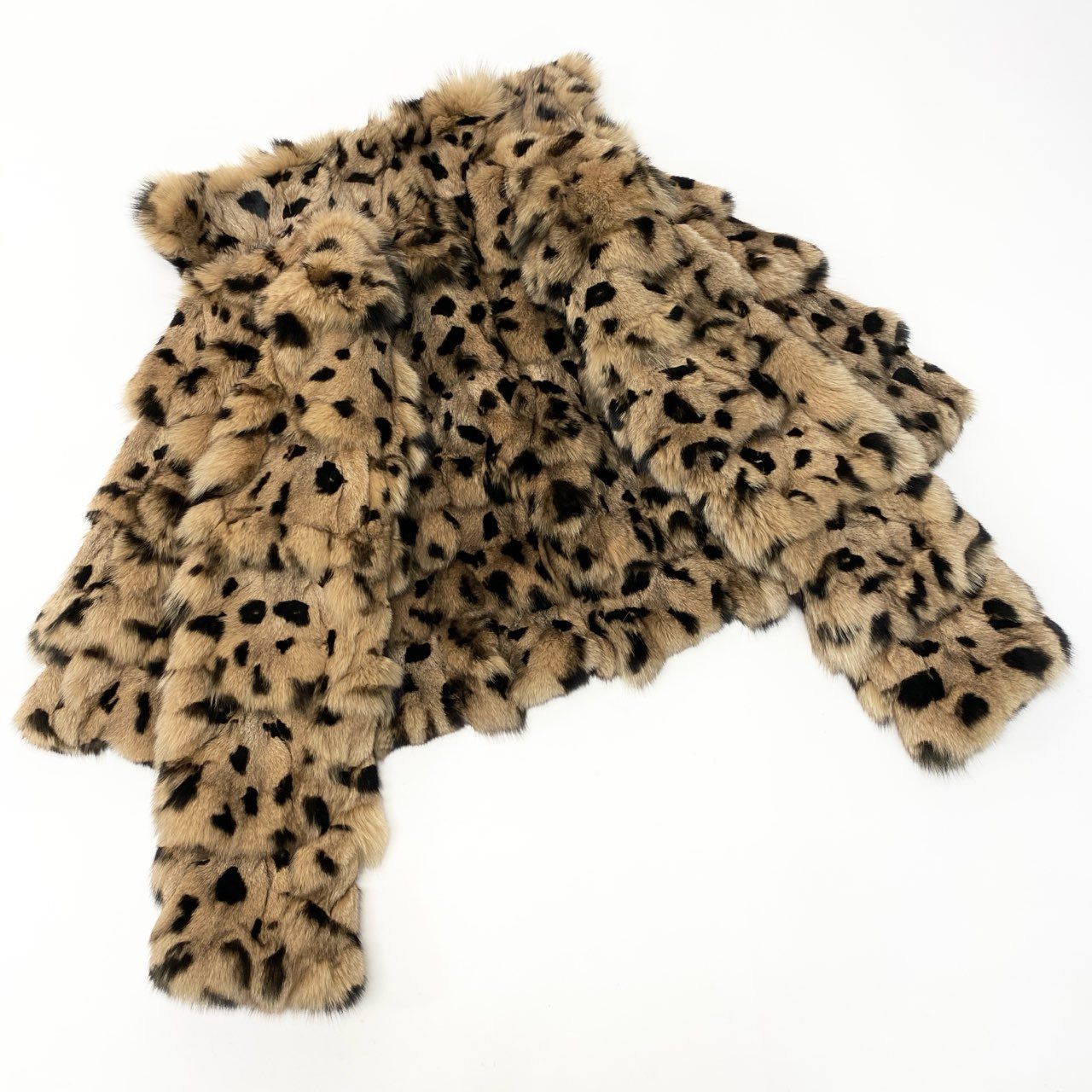 43c2 epolene ブルーフォックス レオパード染め ファーコート サイズ9AR 茶系 本毛皮 Fox Fur Leopard Coatt18r