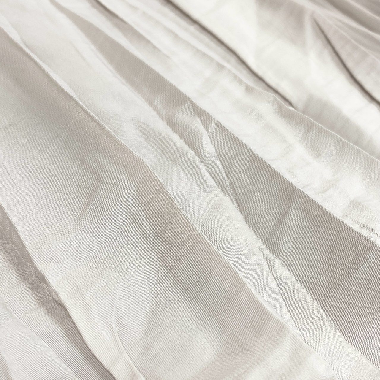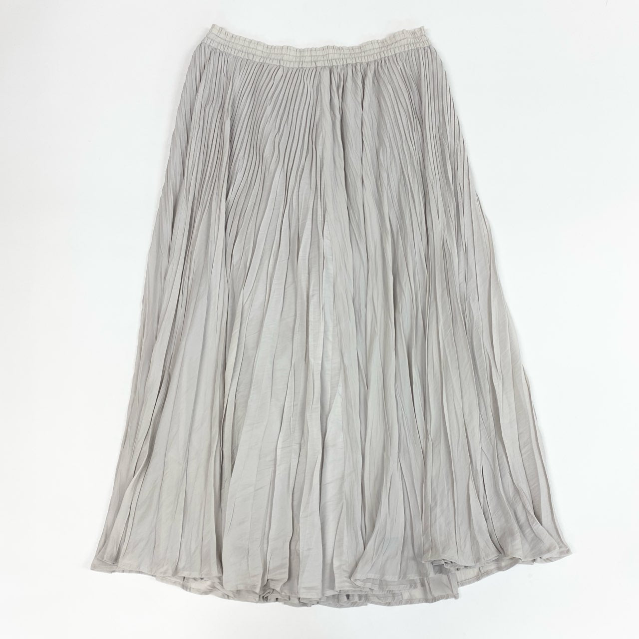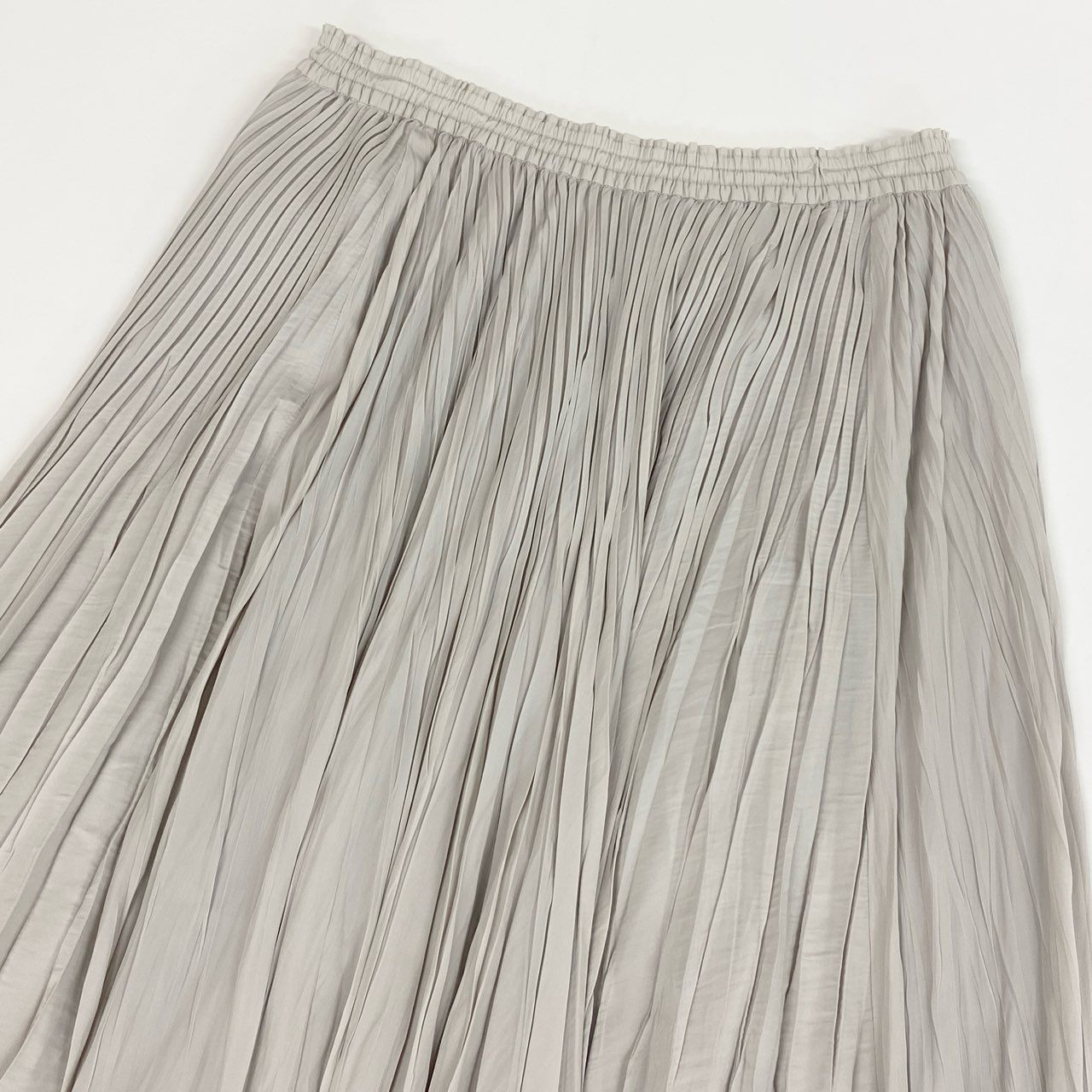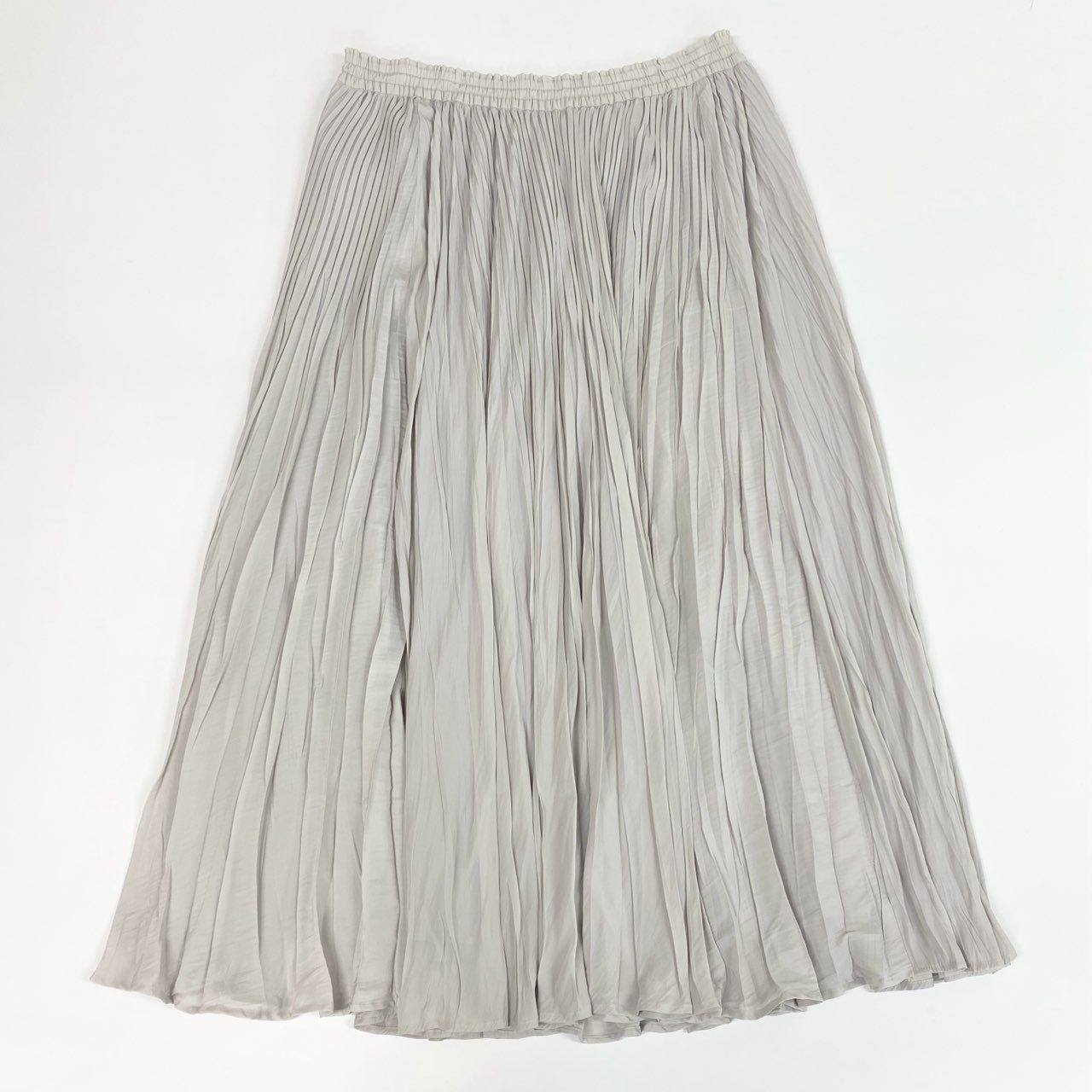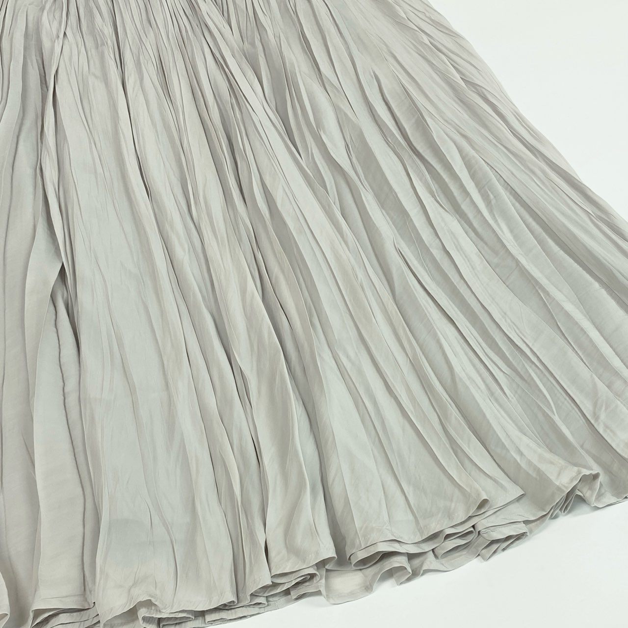 軽やかなポリエステル素材と広がりのあるプリーツデザインが特徴で、腰回りをすっきり見せつつ動きに合わせて美しく揺れるシルエットです。