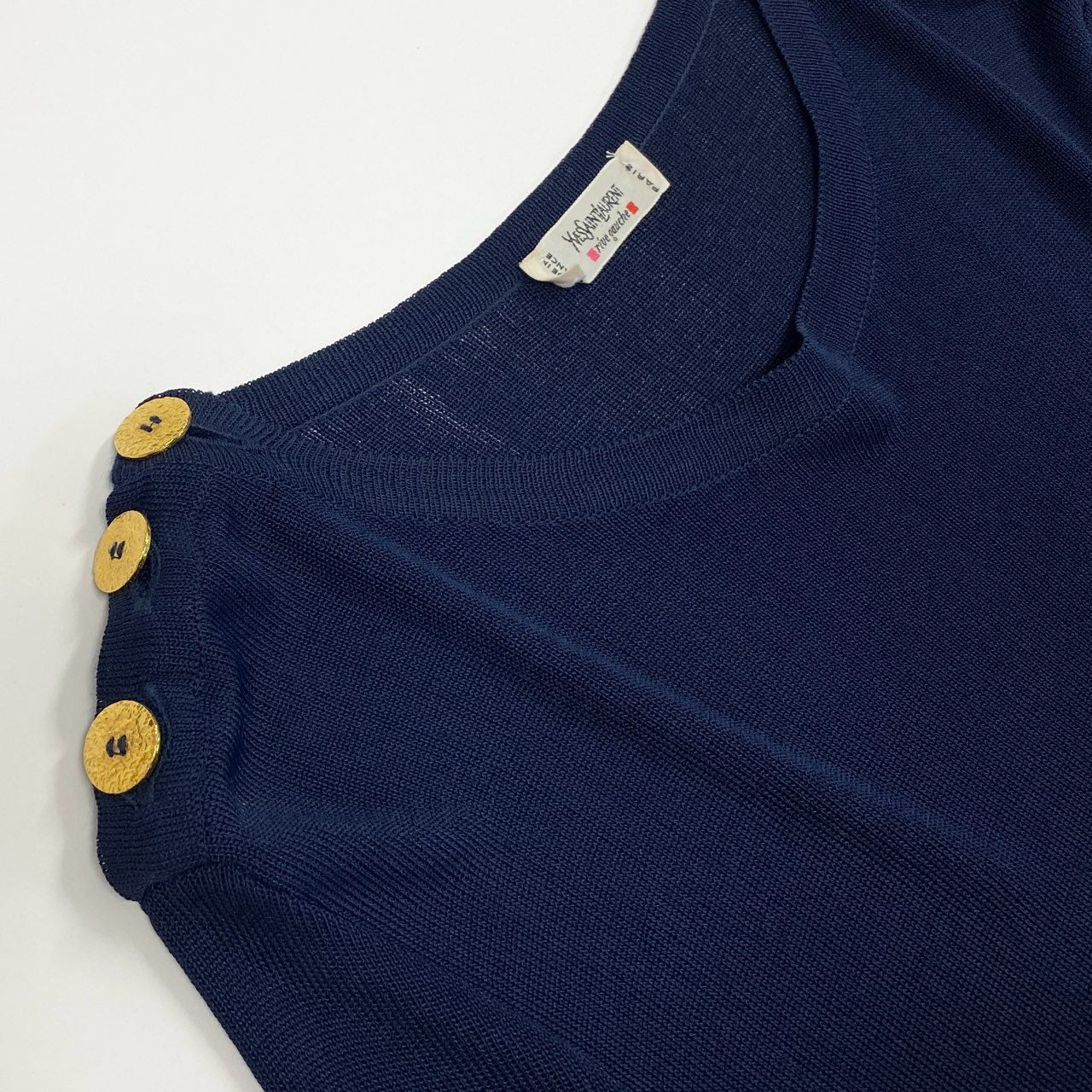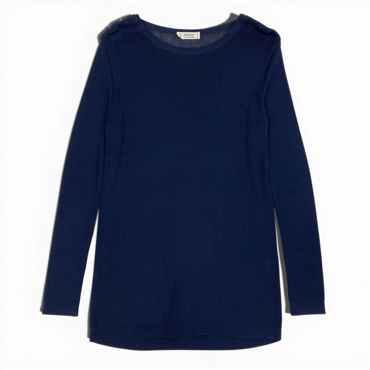 Eb26 Yves Saint Laurent rive gauche イヴサンローラン リブゴーシュ 長袖ニット 金ボタン ネイビー レーヨン レディース フランス製u02t