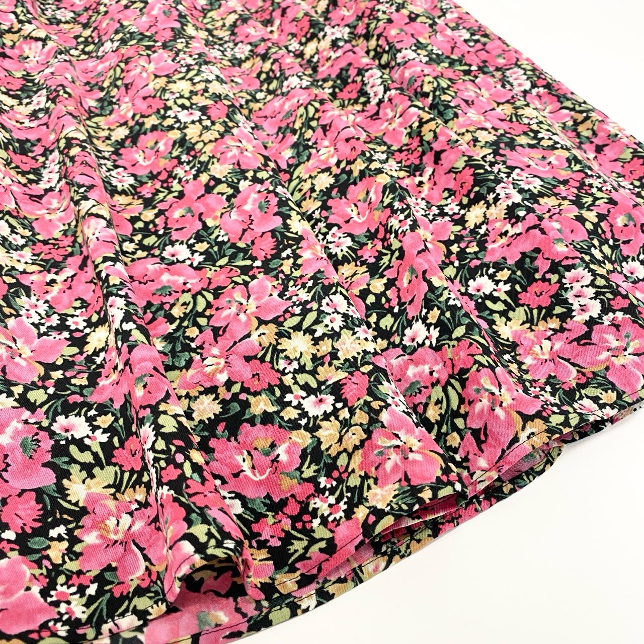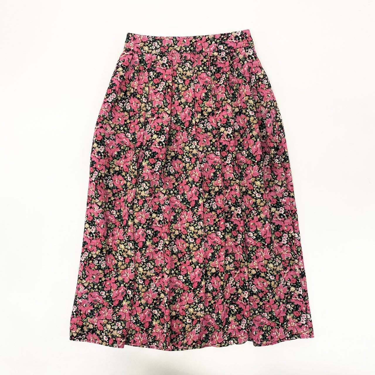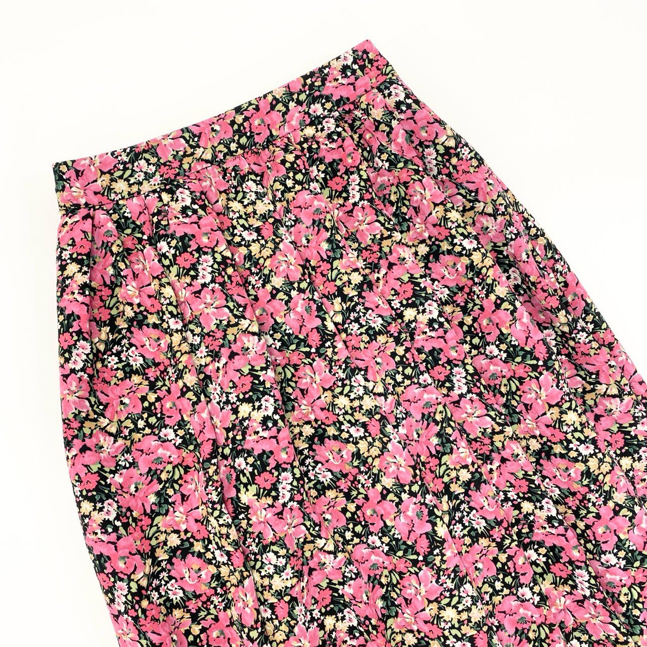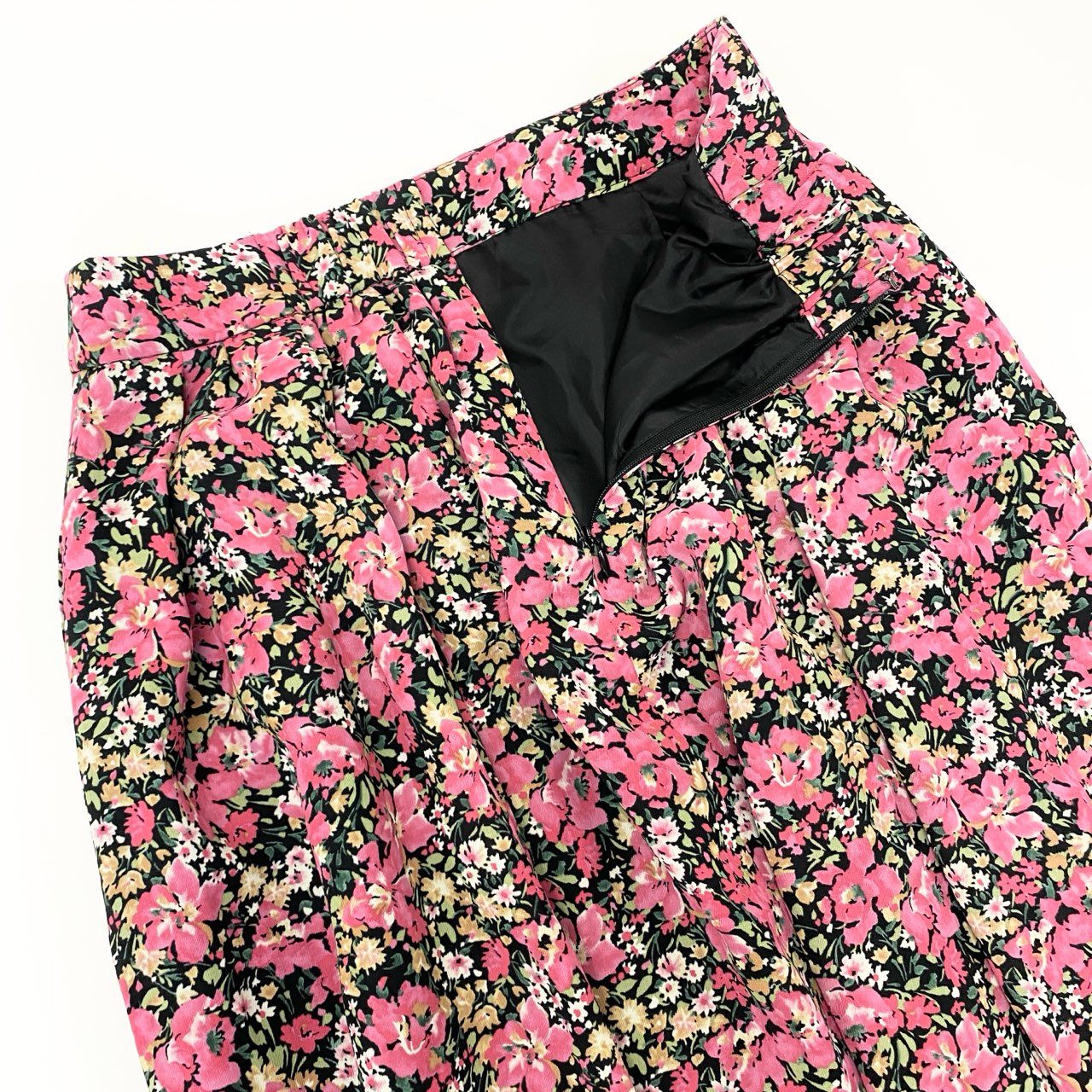 23i17 《未使用》 組曲 kumikyoku フラワープリント ツイルスカート タックフレアスカート 1 ピンク ポリエステル レディースu02t