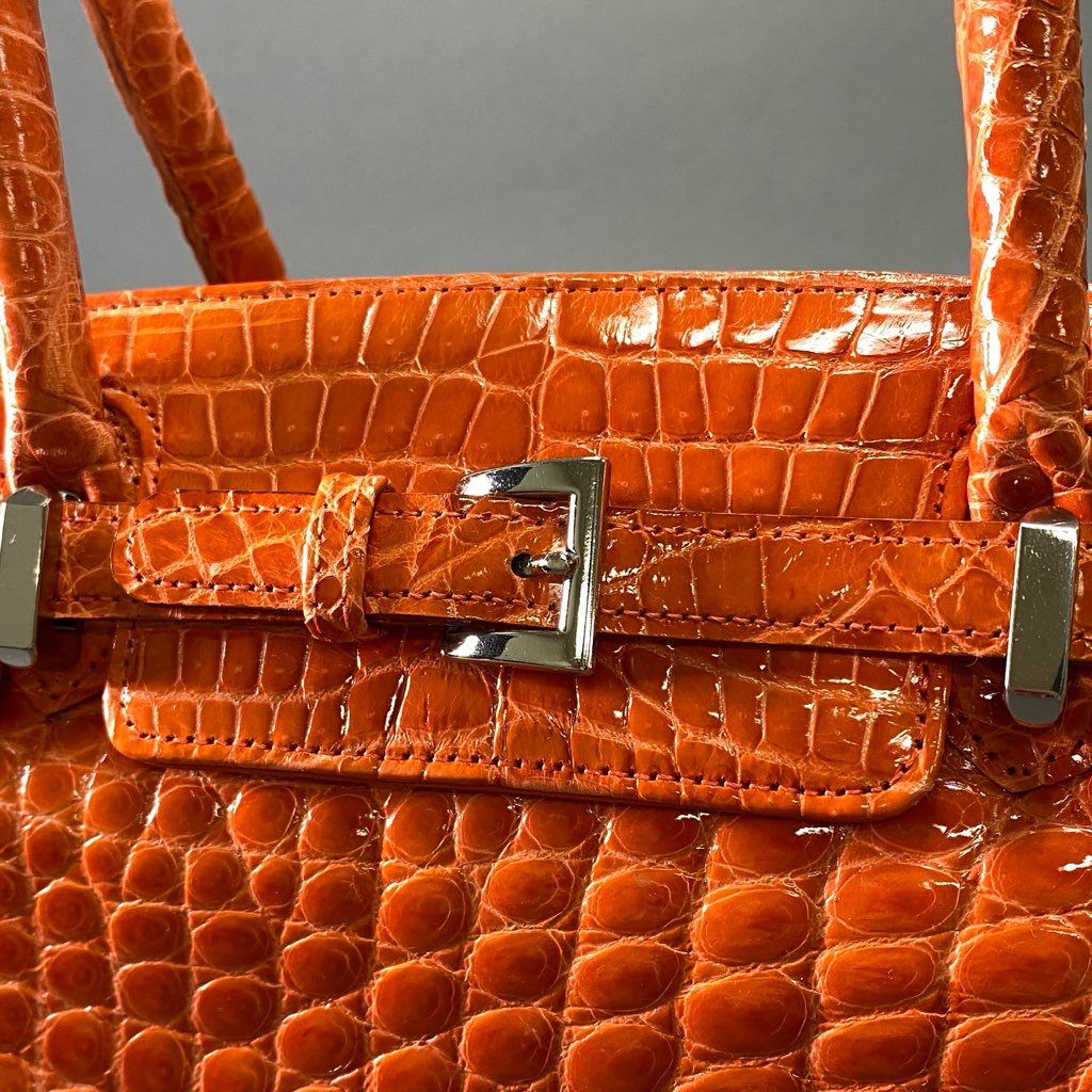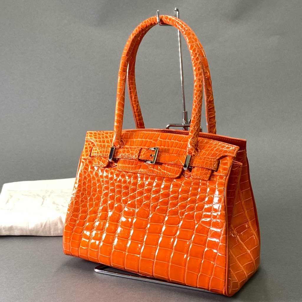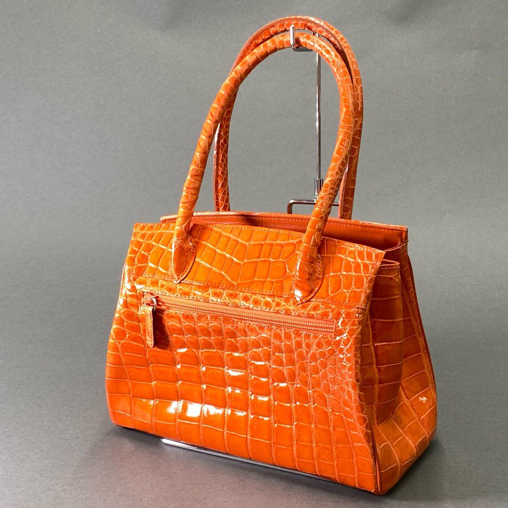 Ae17 【美品】 本革 シャイニングクロコダイル クロコダイルレザー ハンドバッグ ベルトストラップデザイン レディース 女性用 鞄 リアルクロコ