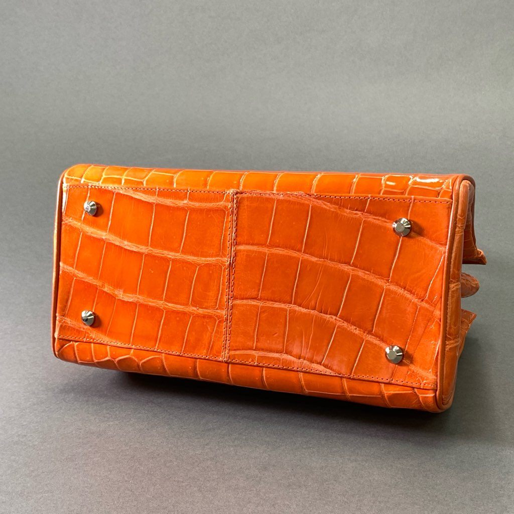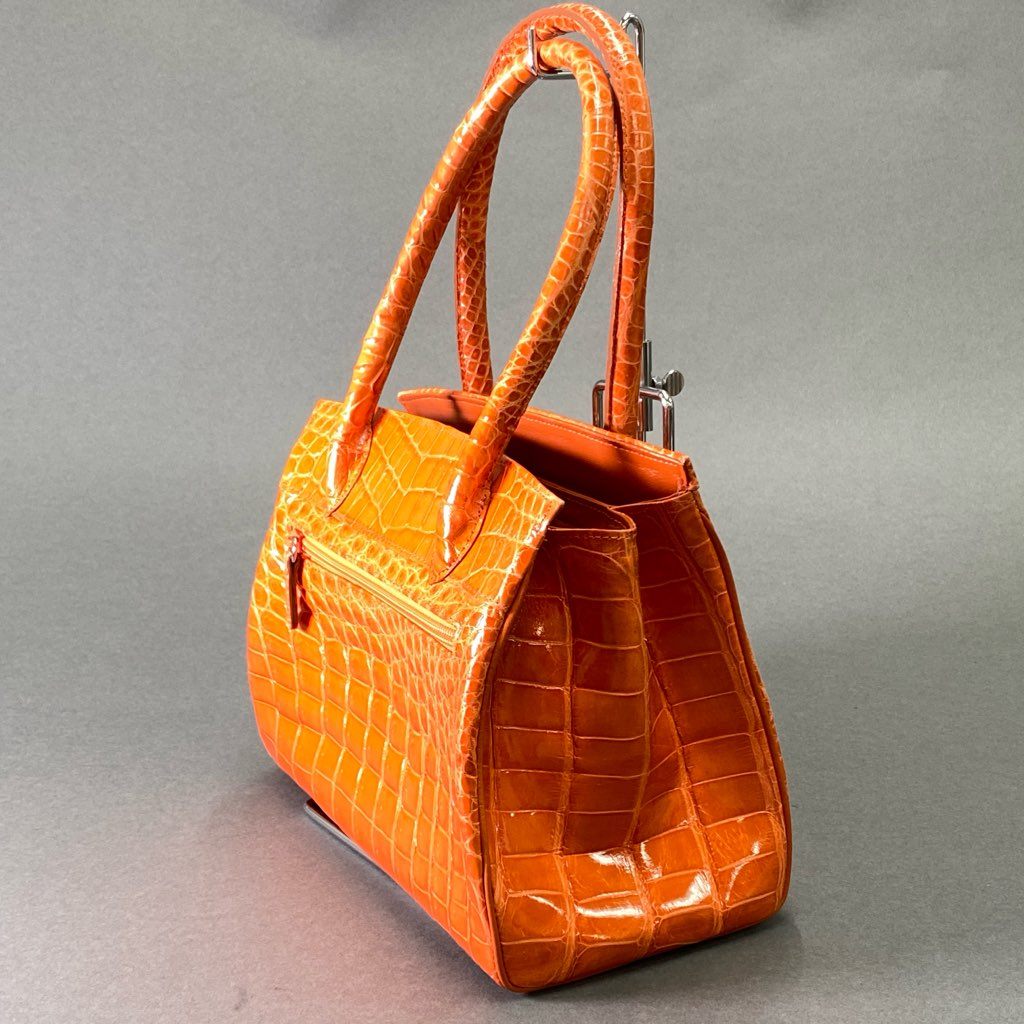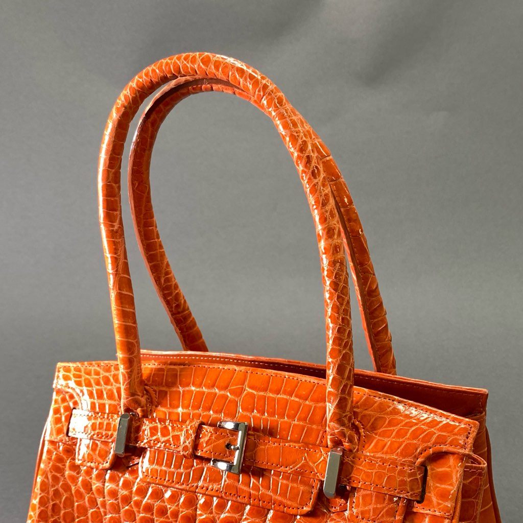 Ae17 【美品】 本革 シャイニングクロコダイル クロコダイルレザー ハンドバッグ ベルトストラップデザイン レディース 女性用 鞄 リアルクロコ
