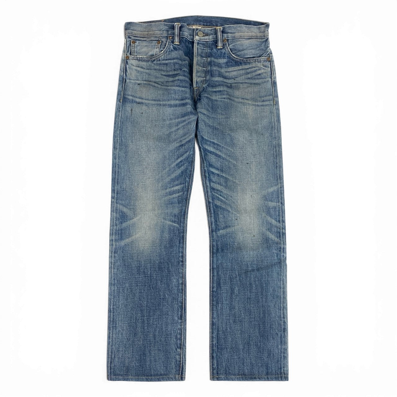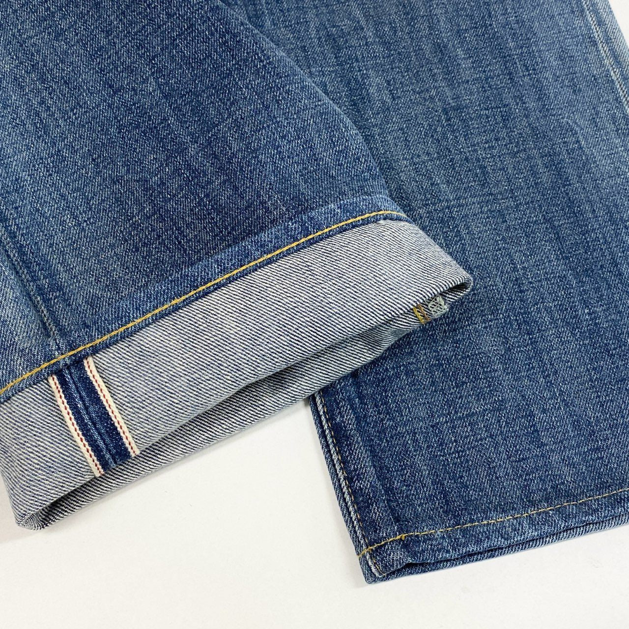 DOUBLE RL(RRL)のデニムパンツで、深みのあるインディゴブルーに自然な色落ちが映える一本です。無地ベースに、ヒゲやアタリが程よく入ったヴィンテージライクな表情が特徴。マットなコットンデニム素材で、穿き込むほどに風合いの変化を楽しめます。ワークやアメカジスタイルはもちろん、シャツやレザーシューズと合わせた大人カジュアルにも相性の良い定番デニムです。