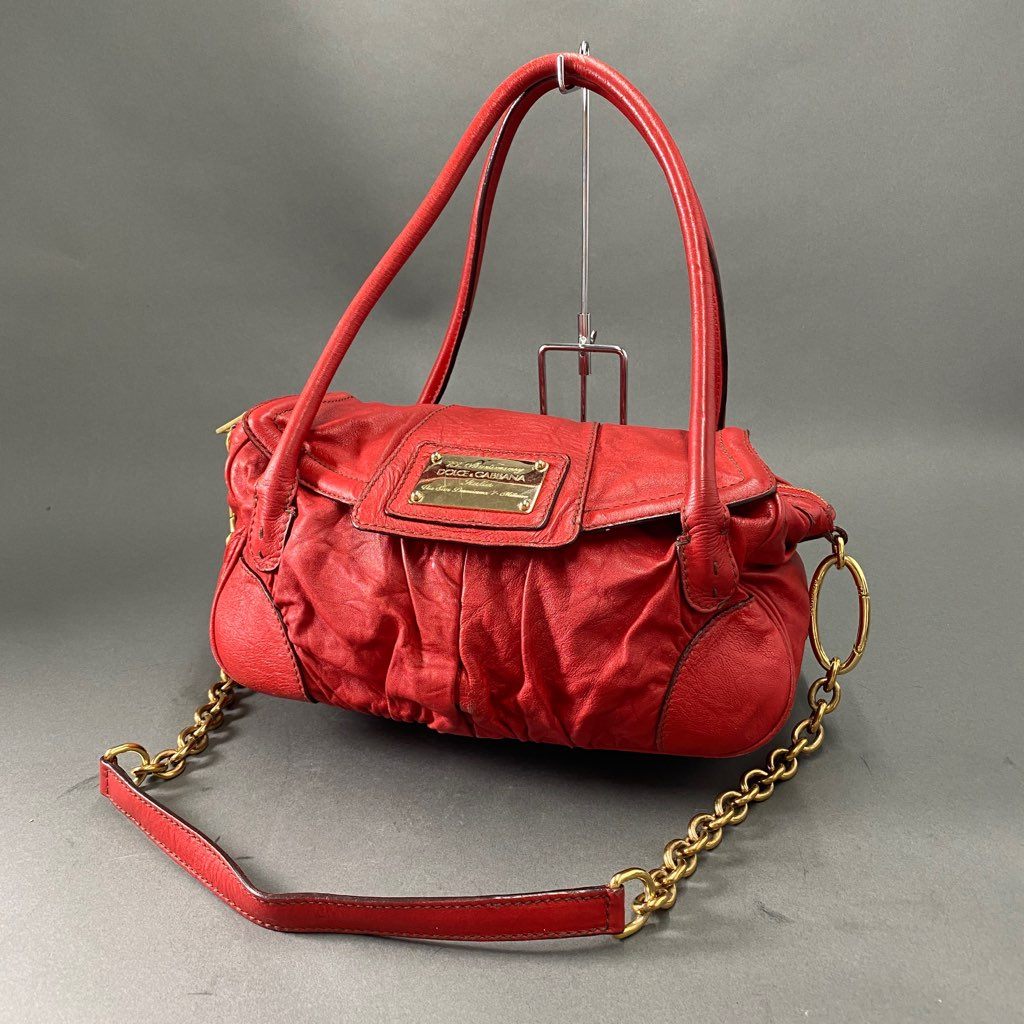 Cb8 DOLCE&GABBANA ドルチェアンドガッバーナ 2WAY チェーンショルダーバッグ ハンドバッグ レッド レザー D&G ドルガバ
