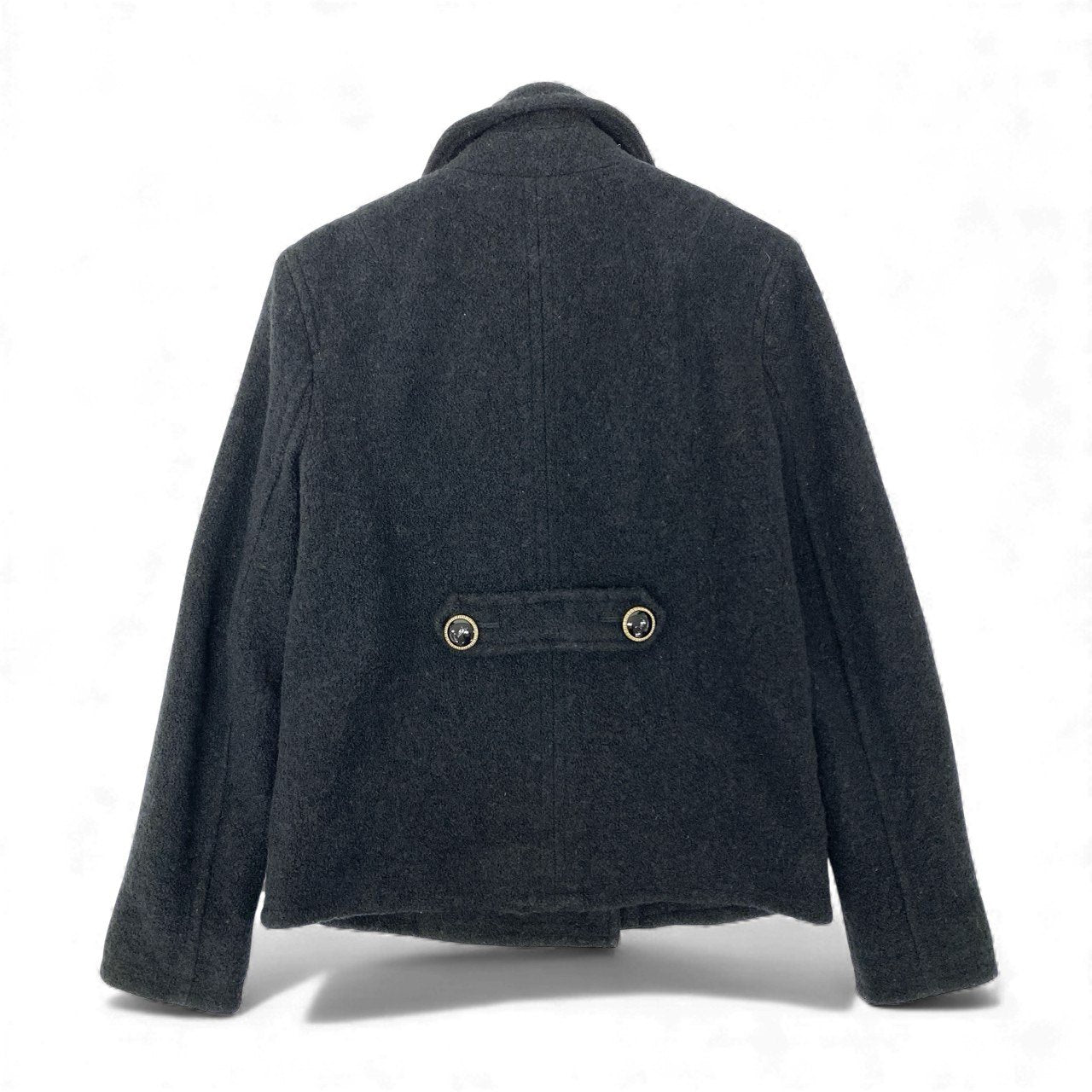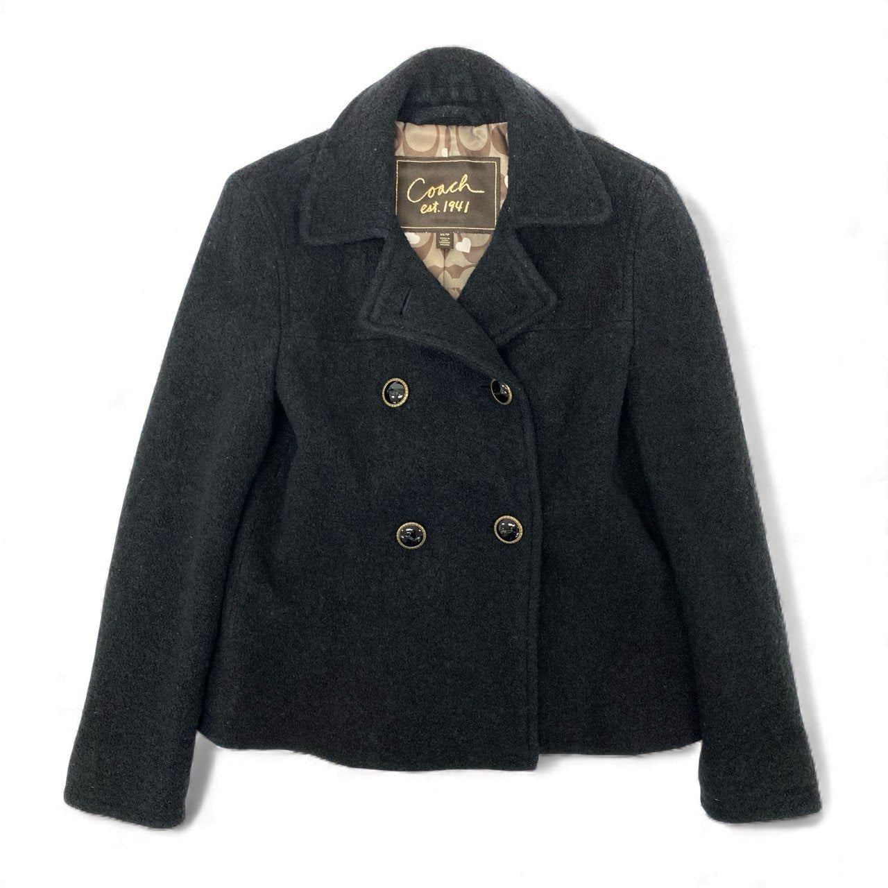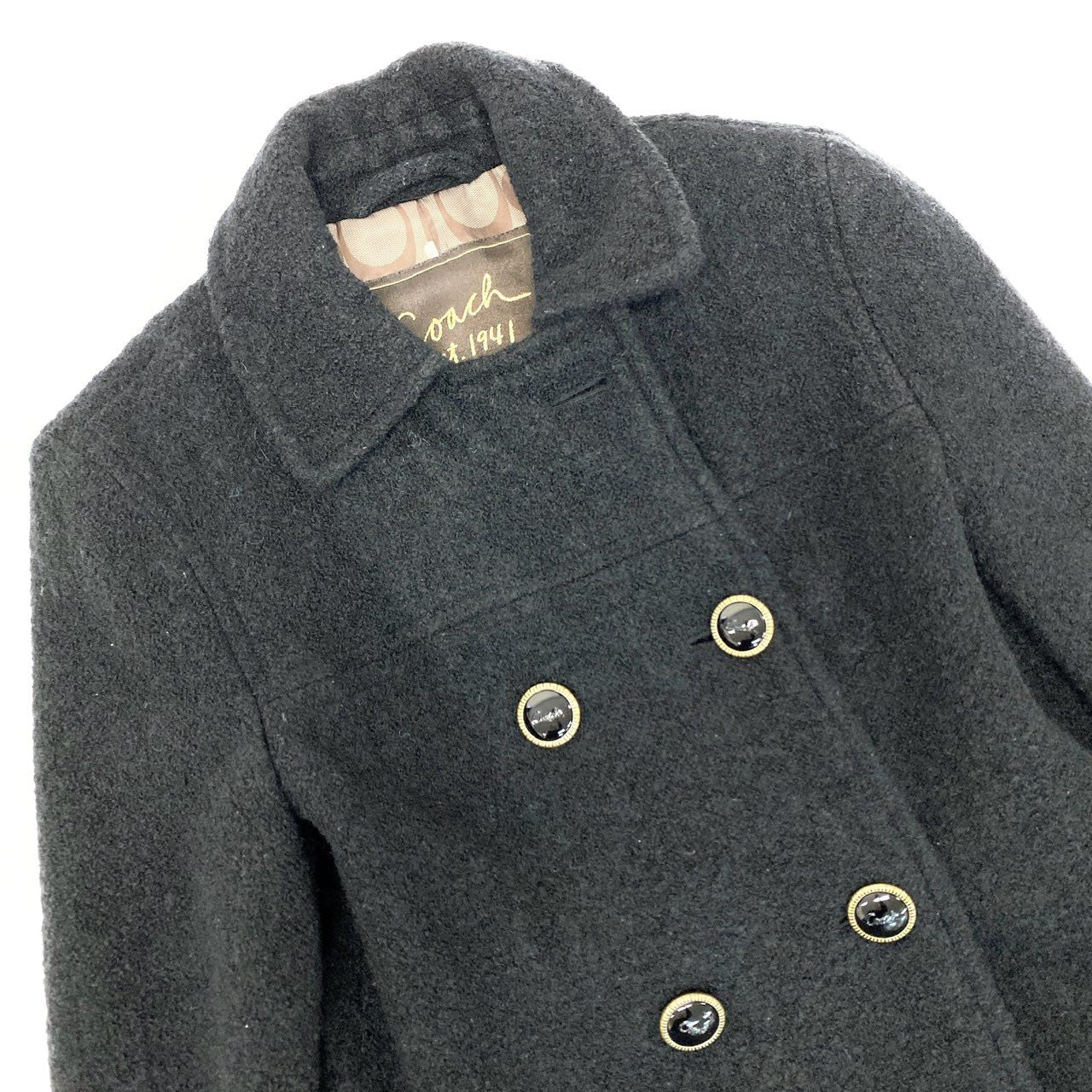 10k11 COACH コーチ ダブルブレスト ジャケット ショート丈 Pコート ウールブレンド 裏地ブランドロゴ ハート柄 レディース 女性用 XS ブラックu02t