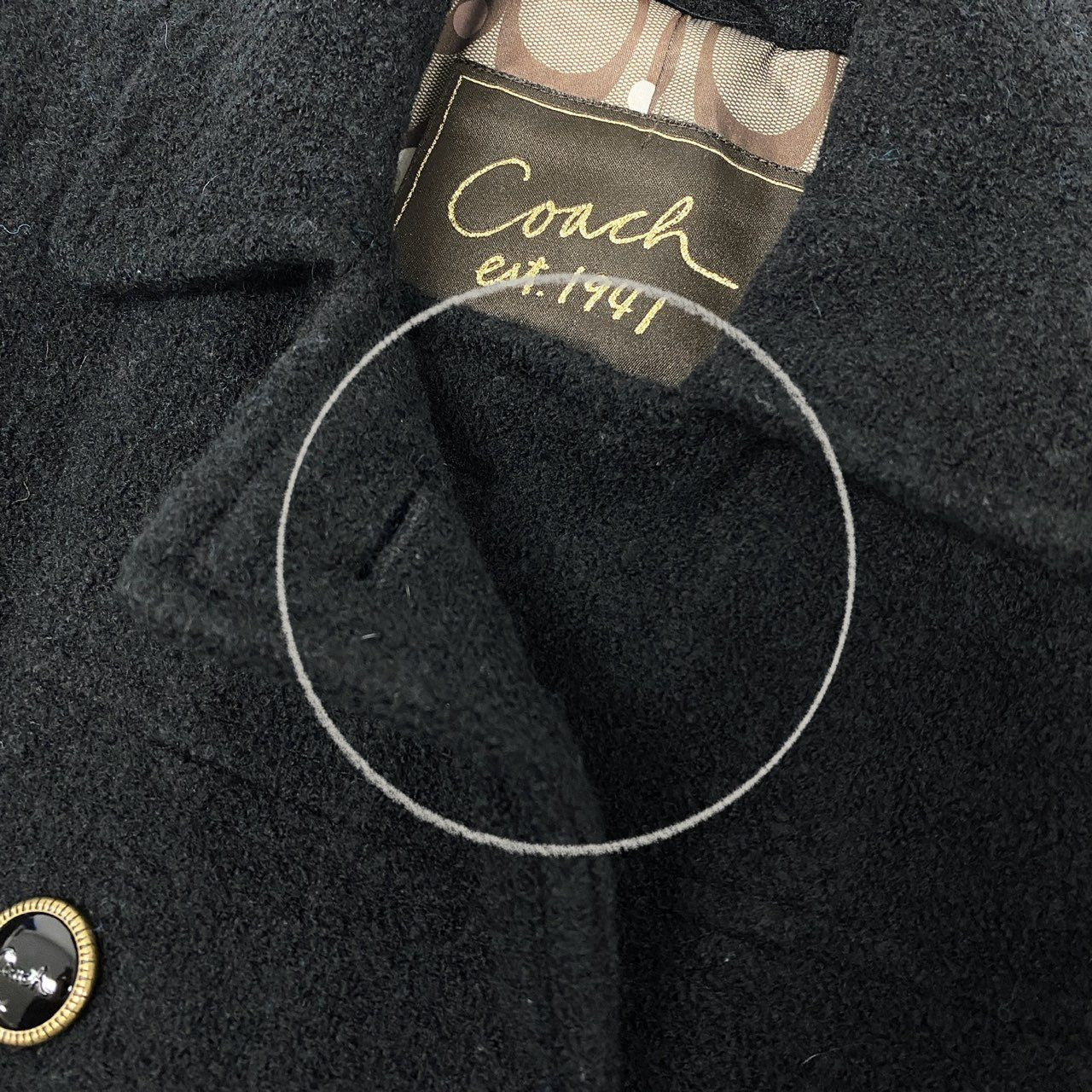深みのあるチャコールブラックに、内側にはコーチのシグネチャー柄裏地を施した、上品で遊び心のあるダブルブレストジャケットです。ウールブレンド素材であたたかく、Pコートらしいクラシックな雰囲気が特徴。ほどよいショート丈は、スカート・デニム・ワイドパンツなど幅広いスタイルに相性◎。普段使いからお出かけまで、着るだけで大人の上質感を演出できる一枚です。