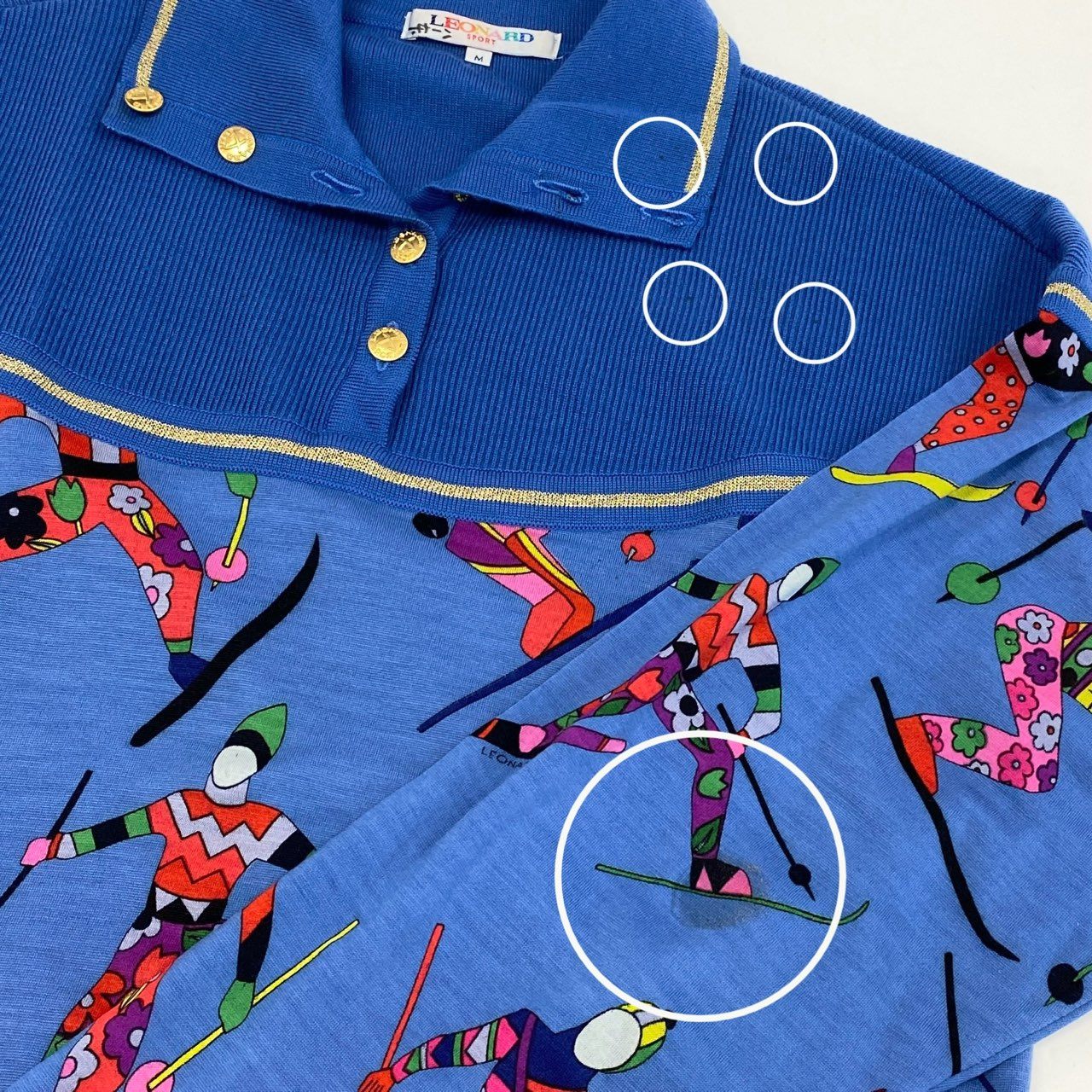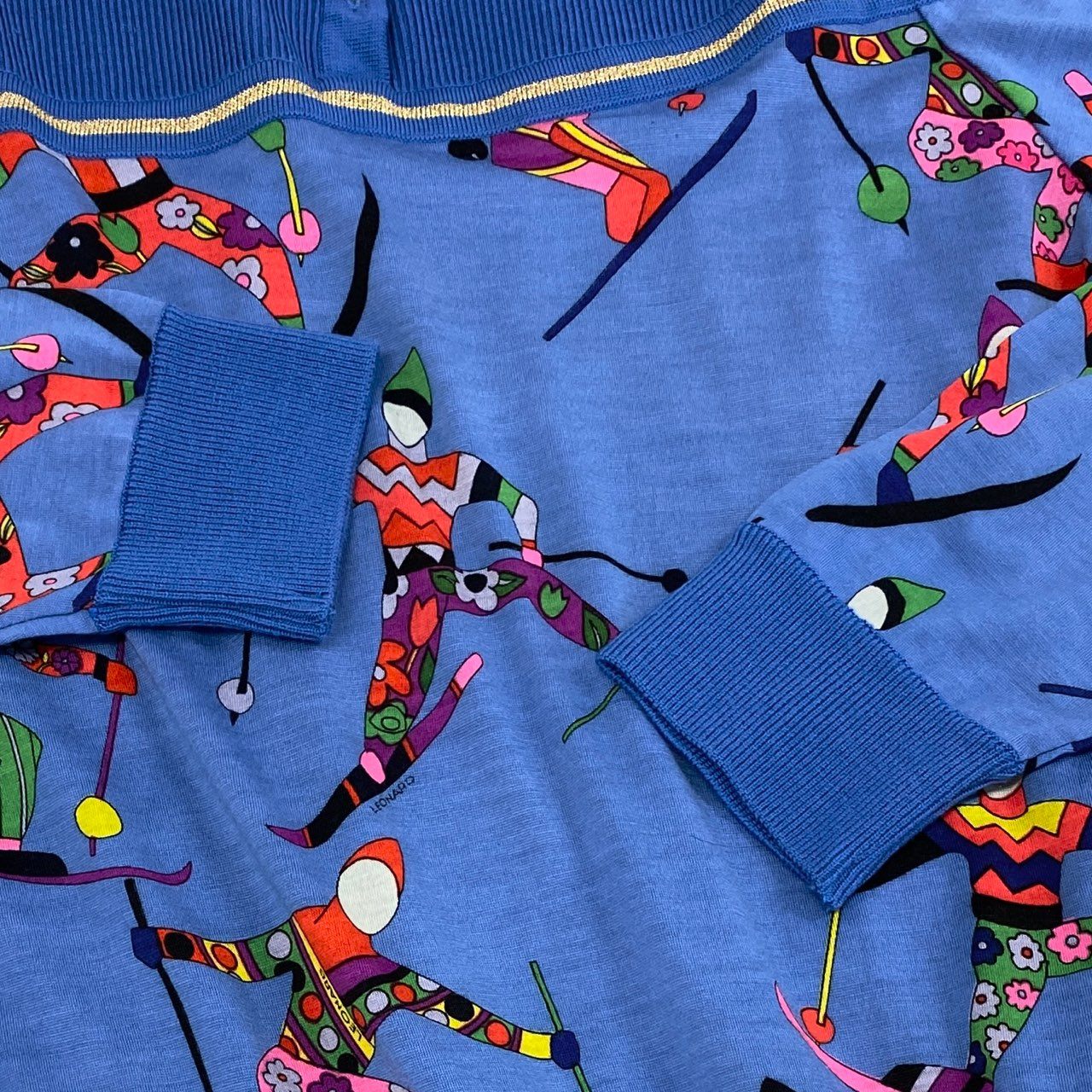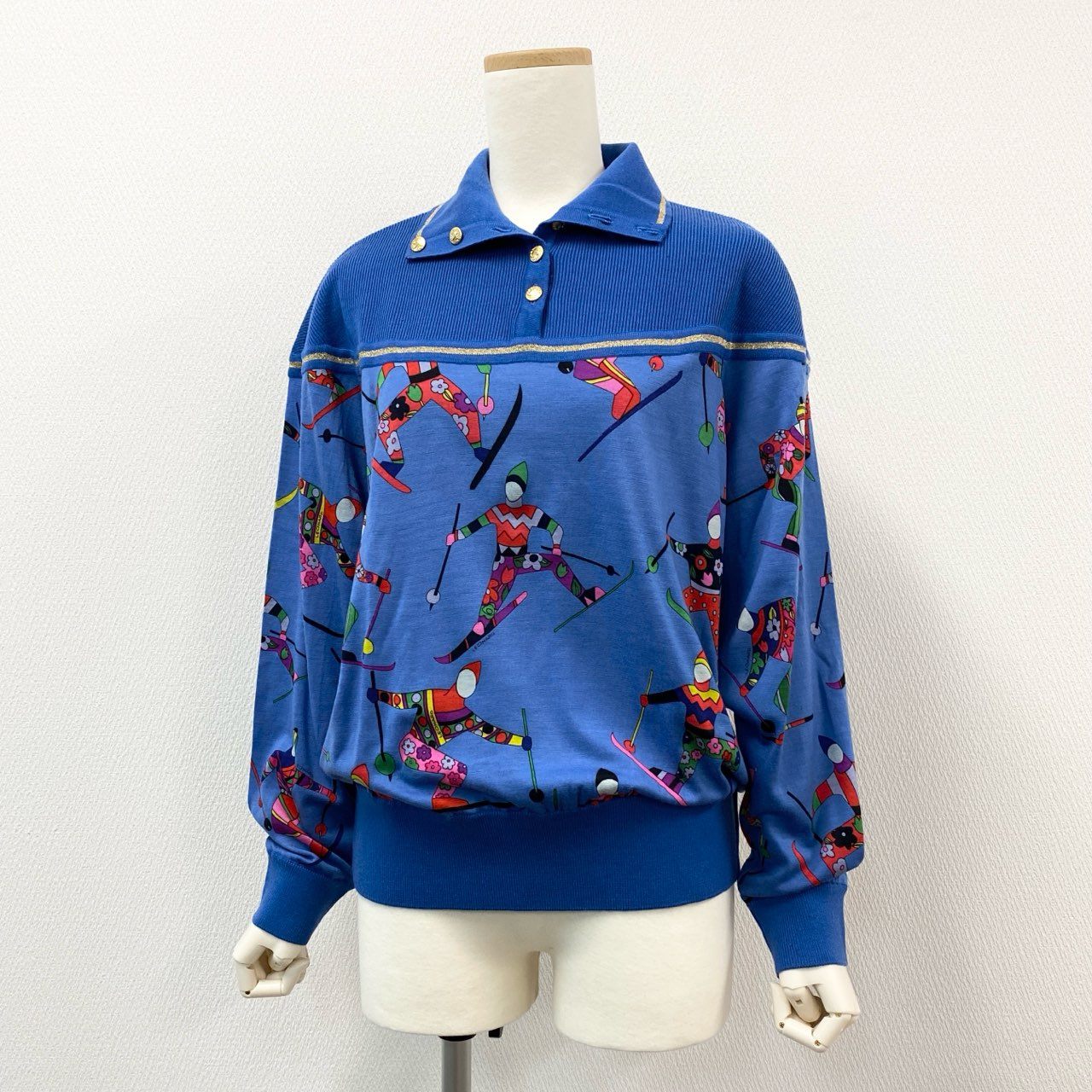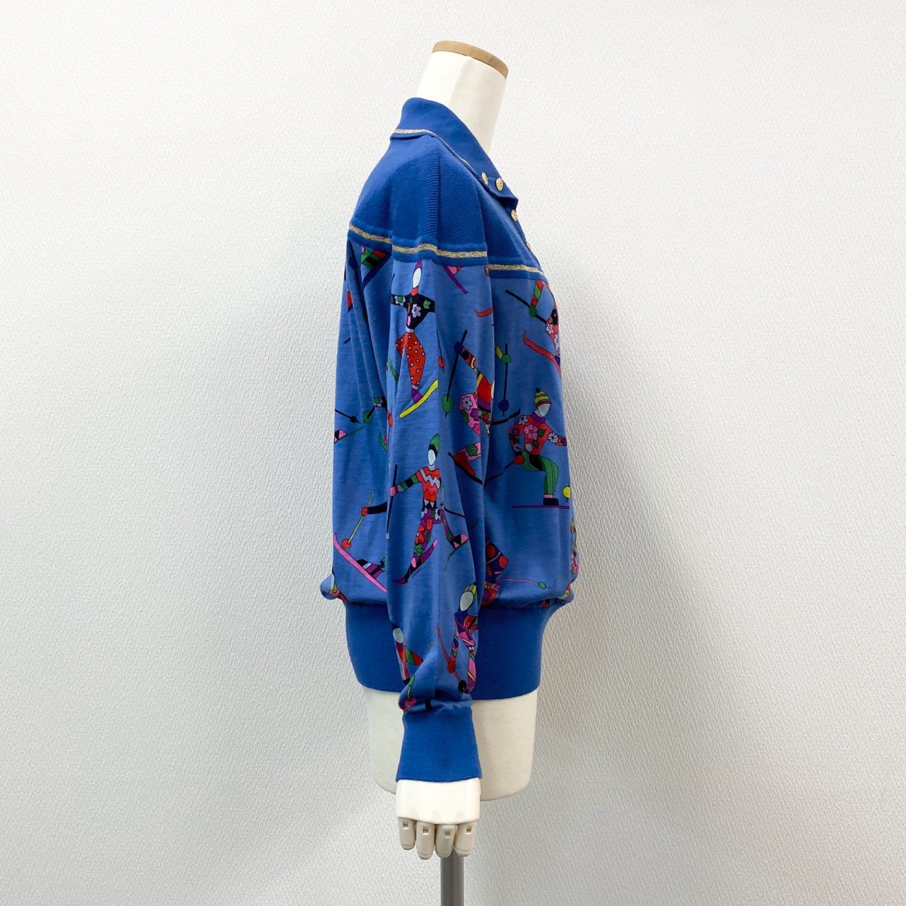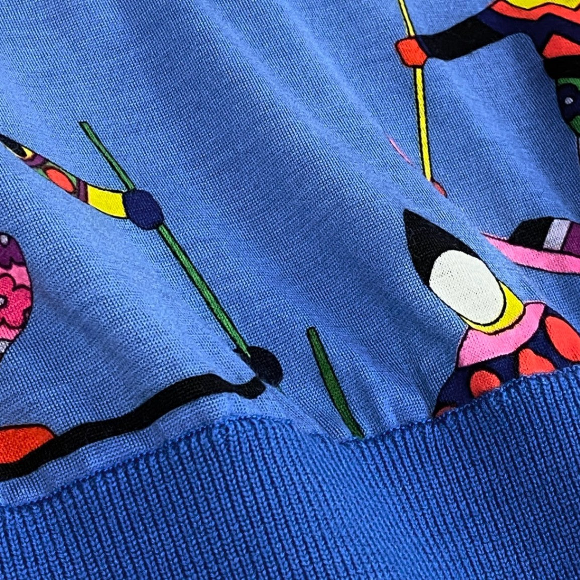 鮮やかなロイヤルブルーをベースに、スキーモチーフの総柄プリントが印象的なレオナールのニットポロシャツです。襟元にはゴールド調のボタンが配置され、スポーティーな中に上品さをプラス。素材は柔らかく、着心地の良さと華やかなデザイン性を兼ね備えています。レトロ感漂う個性的なプリントは、コーディネートの主役として活躍。カジュアルなお出かけやリゾートシーン、冬のイベントなどにおすすめの一枚です。