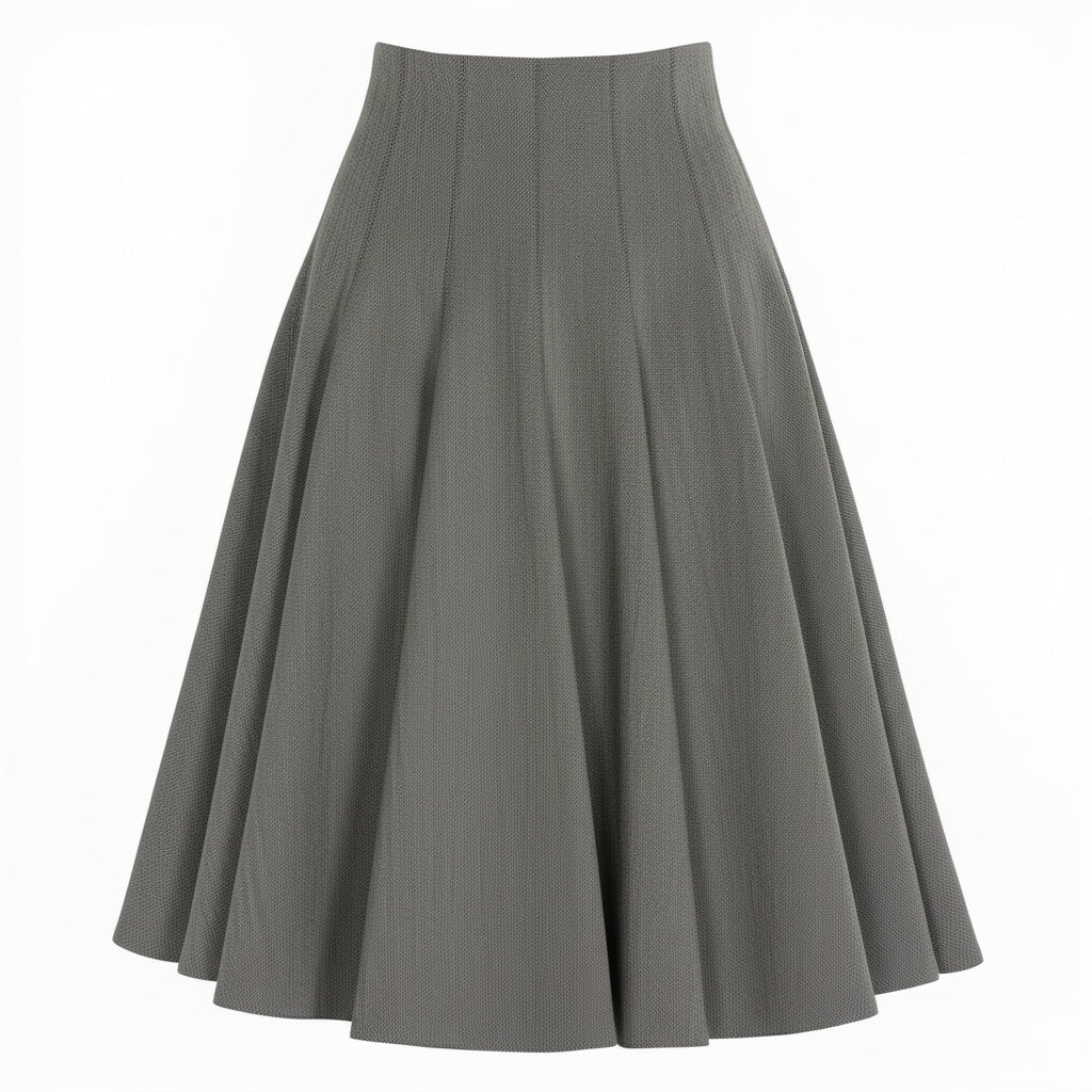 腰まわりはフィットし、裾に向かって大きく広がるフレアシルエットのため下半身をすっきり見せやすい設計です。